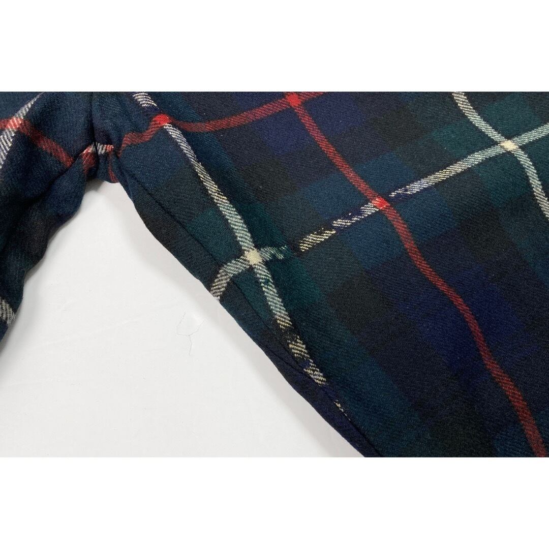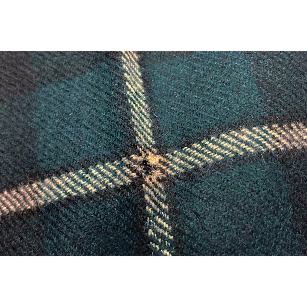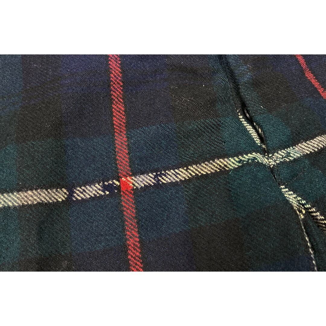 風合いの良いウールフラノ生地で、ネイビーベースのタータンチェックにグリーンと赤のラインが生えるマッケンジー。