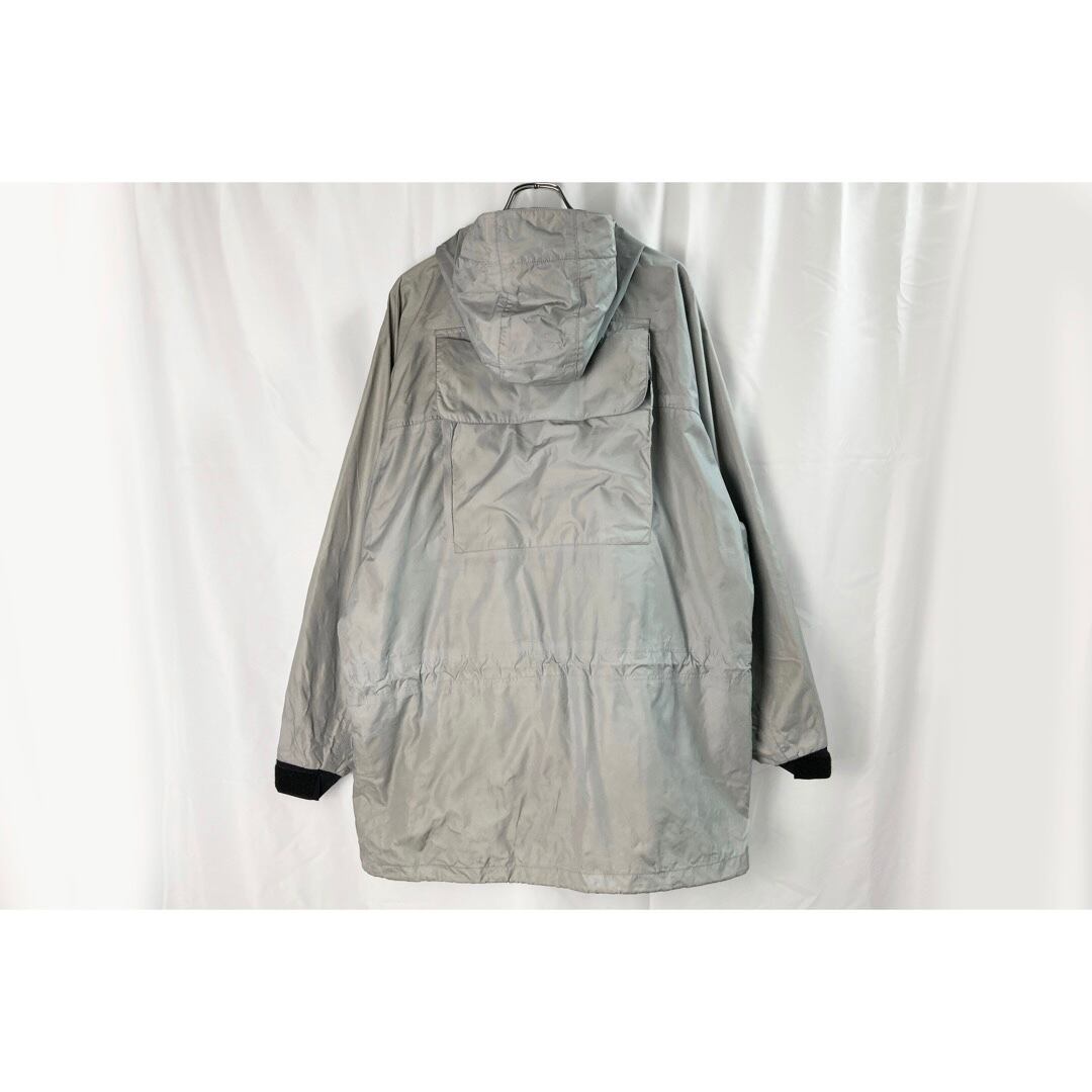 特徴的なのはマチがあって、たっぷりの小物を収納可能な胸ポケット。サイドにはハンドウォーマー付き。色味はグレーになります。