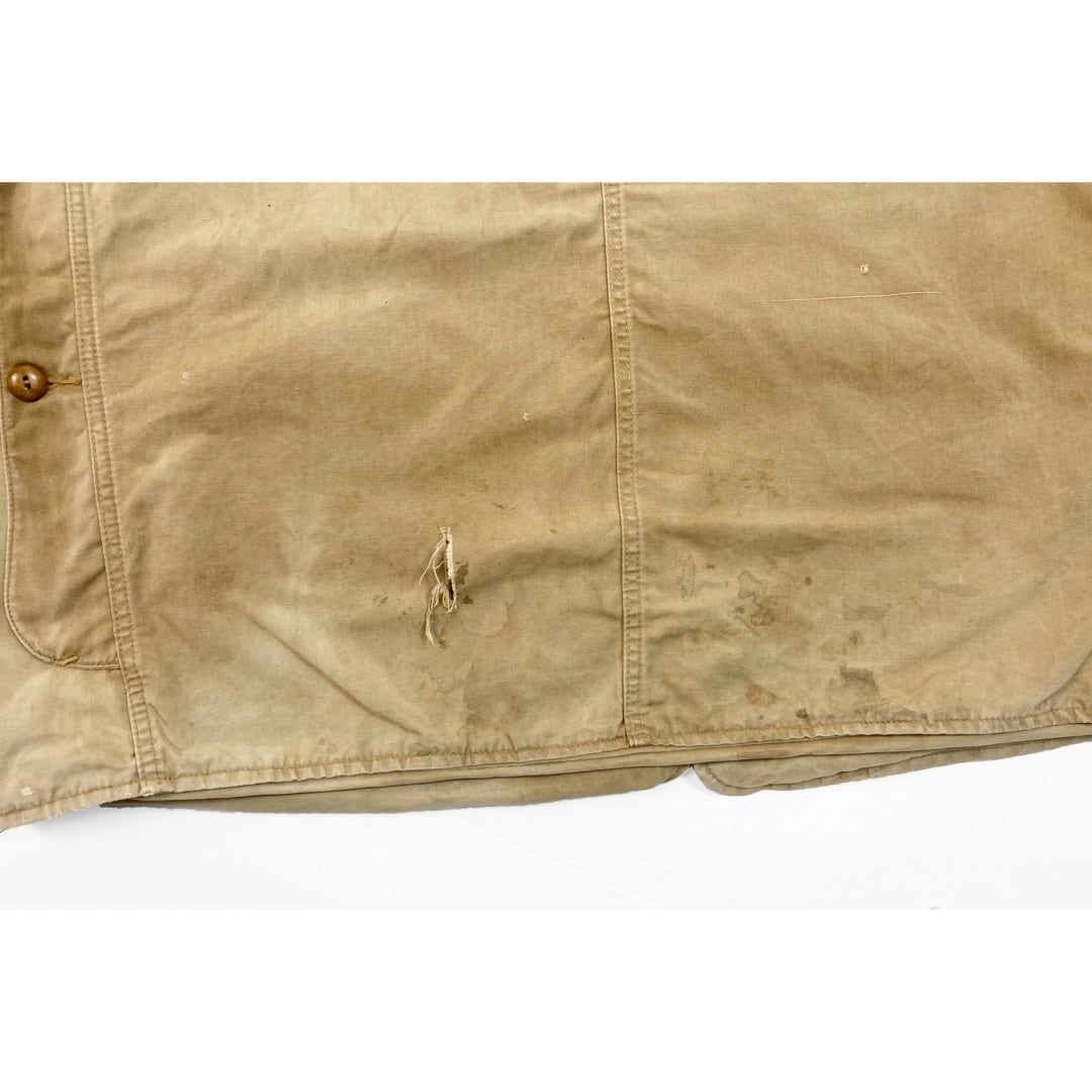 前見頃の4つ目のボタン付近や後ろ見頃に破れ箇所あり。誠に恐れ入りますが、ヴィンテージに不慣れな方はご遠慮ください。写真をよくご確認の上ご購入いただけますようお願い申し上げます。