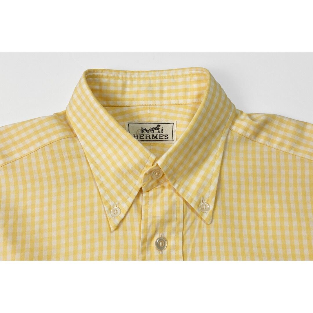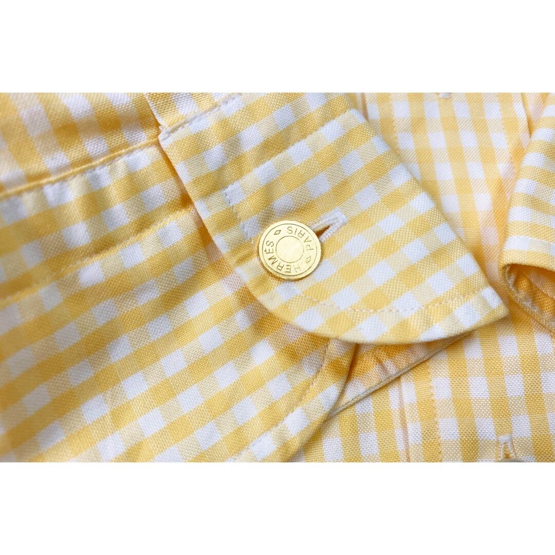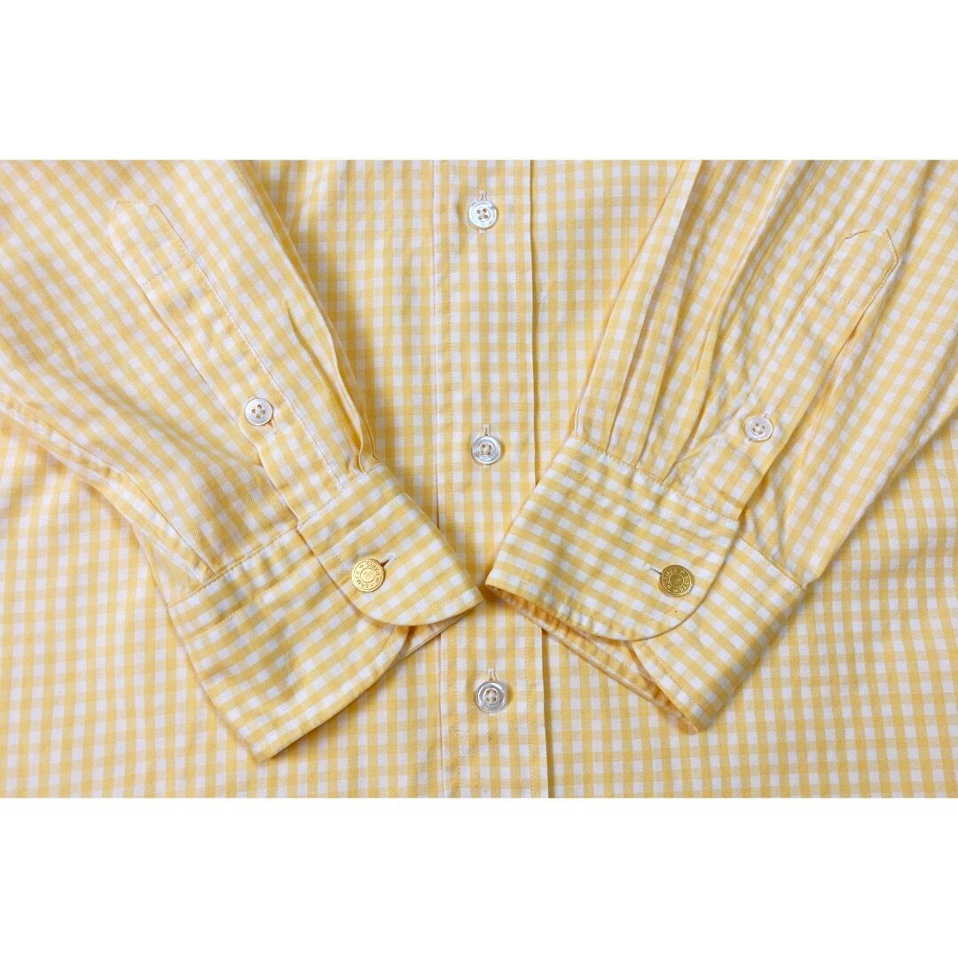 配色の良いイエローチェックに三角型の左胸ポケット。シルエットやディティール、など完成された一着です。