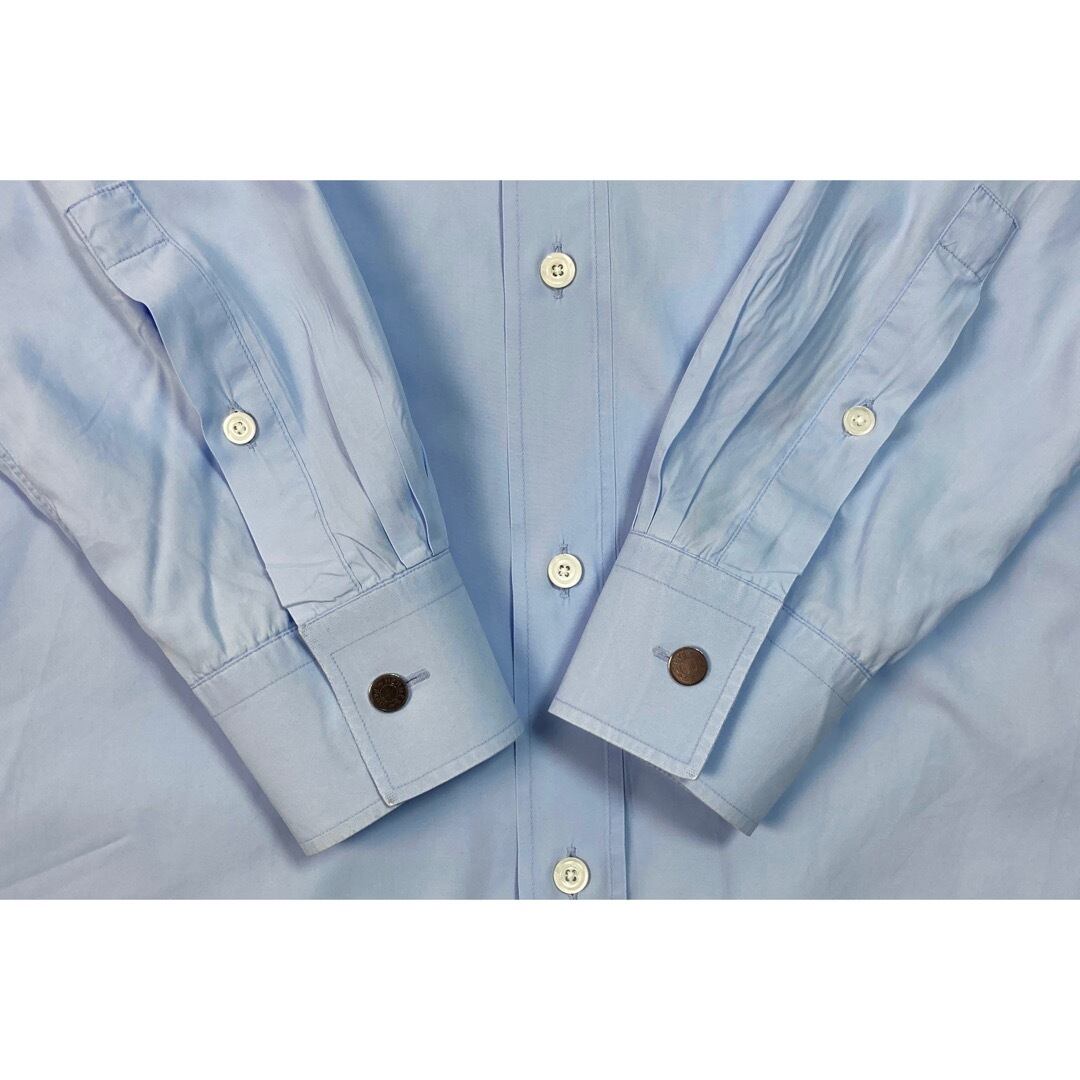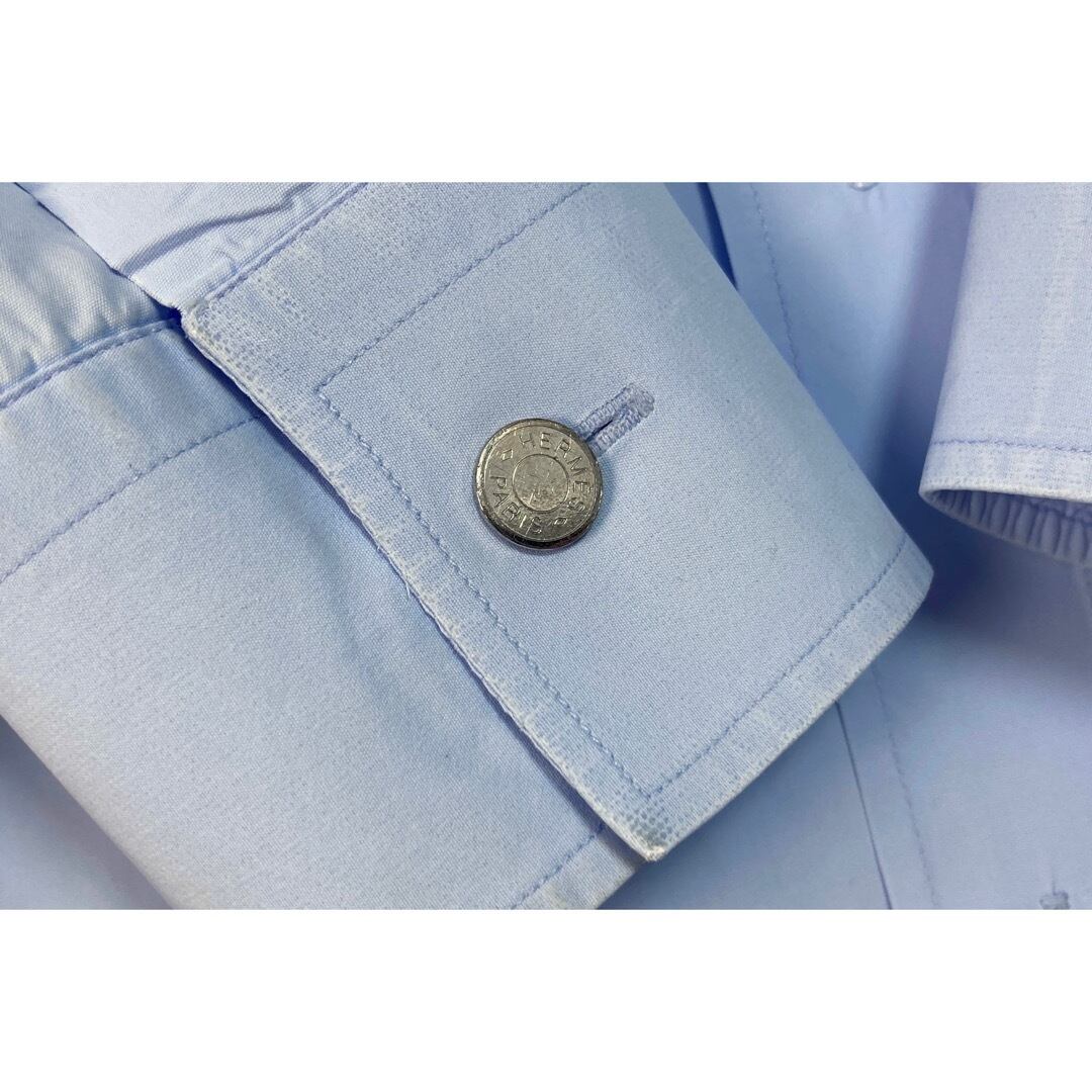 素晴らしい色味で汎用性の高いサックスカラー。シルエットやディティール、生地や縫製など完成された一着です。