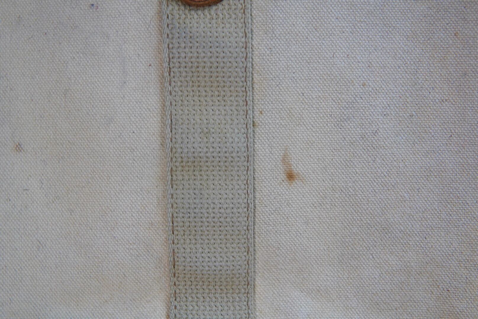 山タグの付くL.L.BEANのキャンバストートバッグ。ナチュラカラー、レザーハンドル使用です。