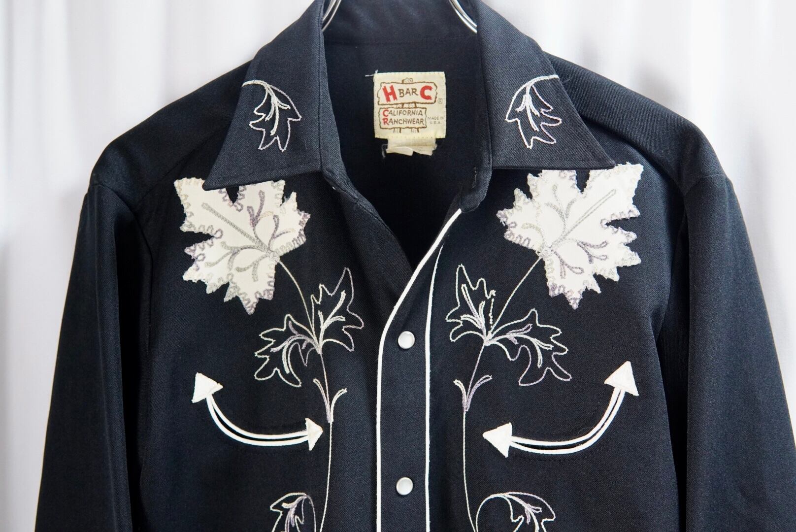 70年代ごろのH BAR Cのポリエステル素材のウエスタンシャツです。