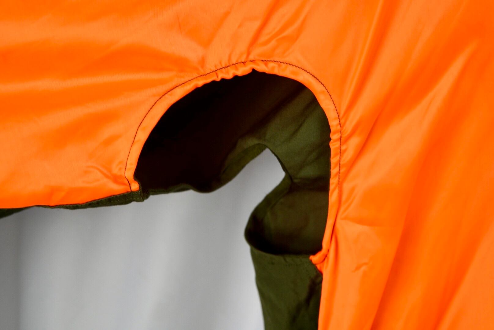フロントはベルクロテープとスナップボタンで、裾にはゴムが入りっています。