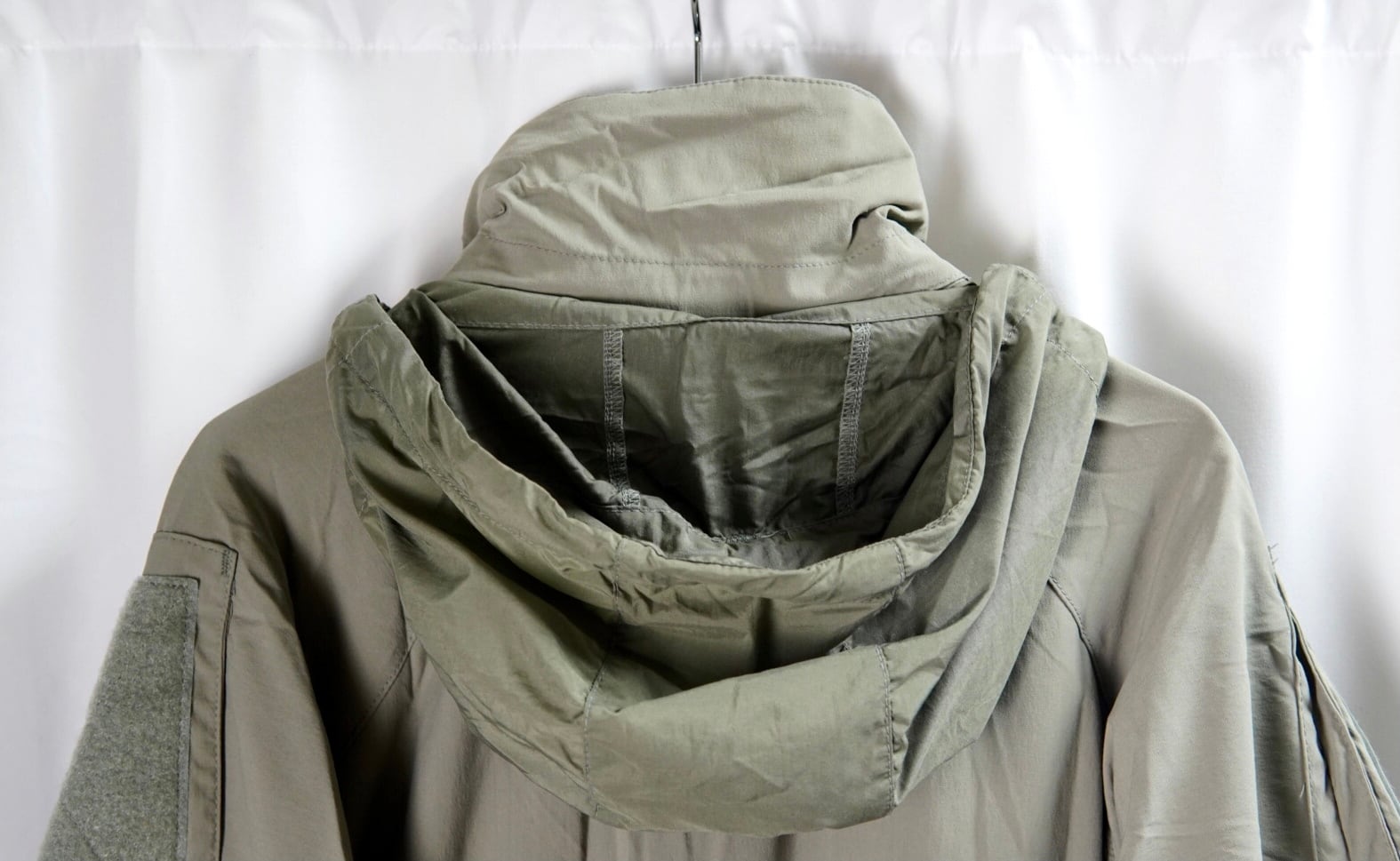 襟にはフードが収納されています。希少なMedium/Regularサイズ、デッドストックでの入荷です。