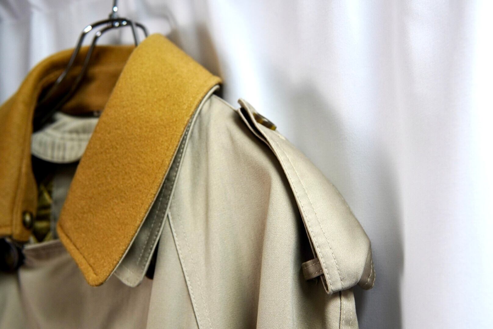 取り外し可能なウール襟、ライナーのついたクラシカルなデザインの一着。