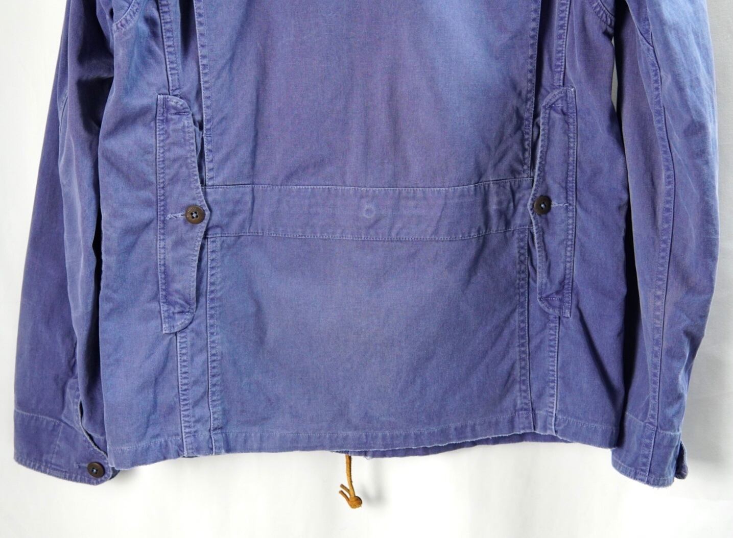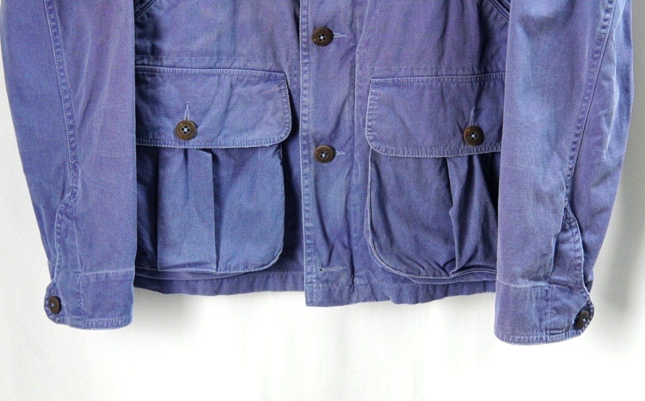 ユーズド加工が施されたビンテージのようなボディ、脇のベンチレーションや背面のゲームポケットなどハンティングジャケットらしい機能的なデザイン。