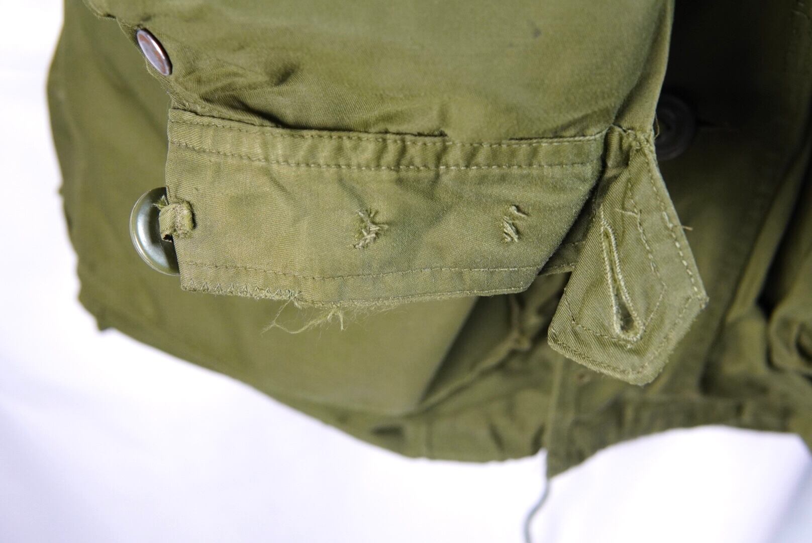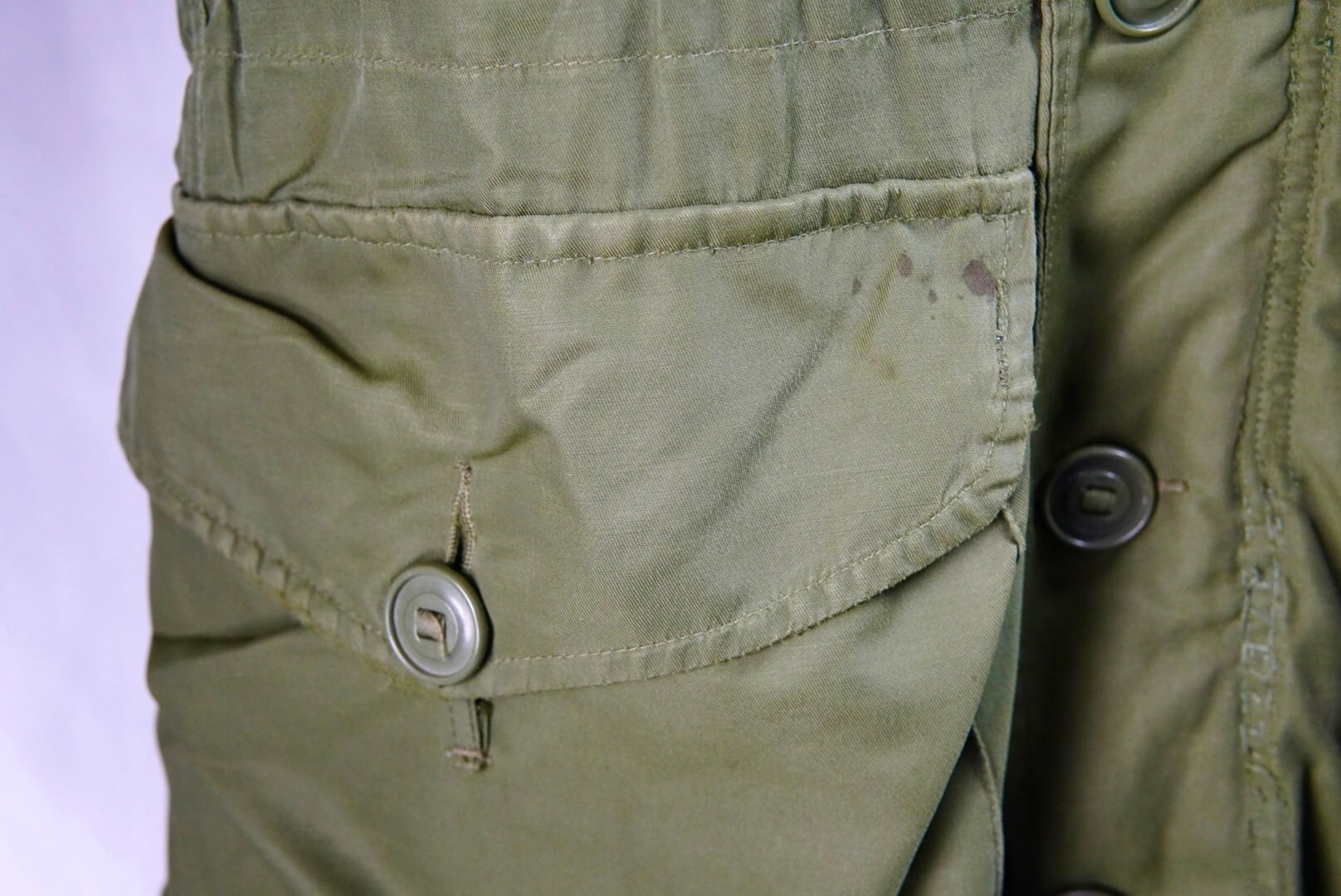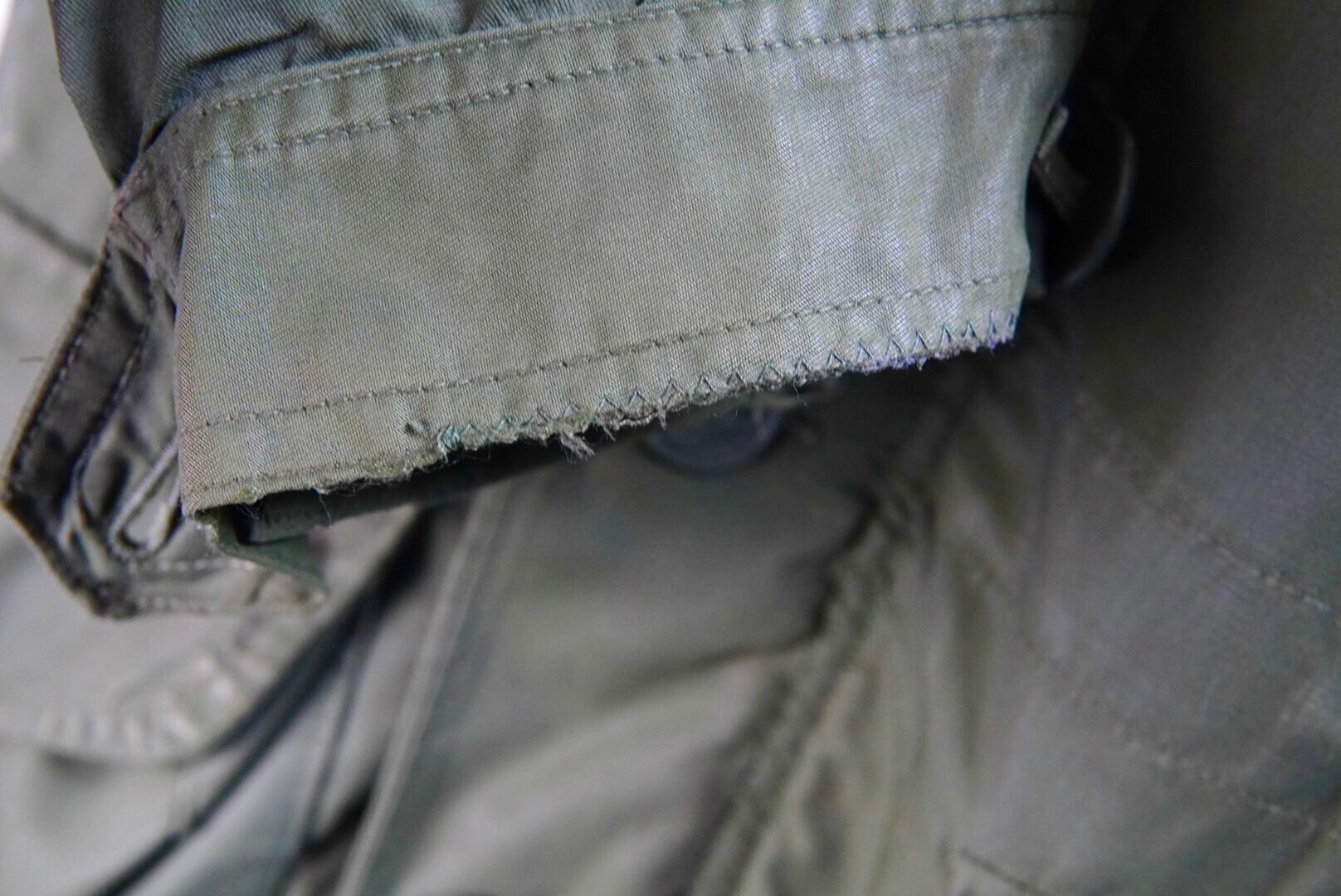 右サイドポケットに汚れ、右袖ボタンの欠損、袖や前あわせ、肩等に補修箇所。所々に傷やスレ、汚れ、タグに書き込み等それなりの使用感がございます。