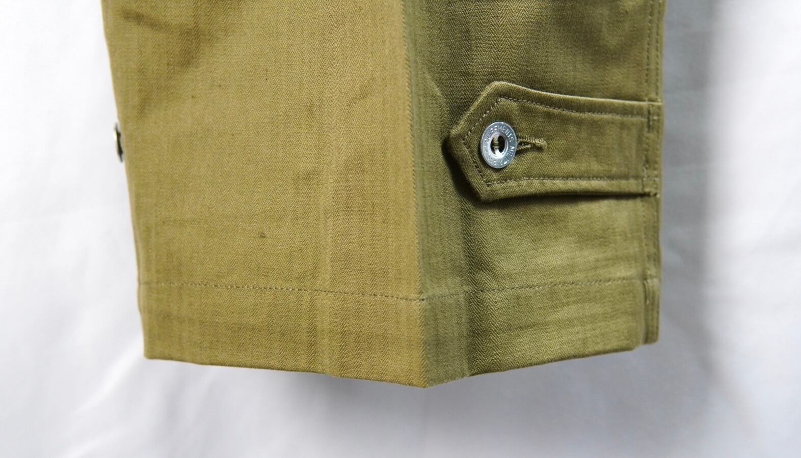 細かい仕様の変化などは色々ございますが、こちらはトップボタンがダブル仕様、生地はコットンヘリンボーンツイルのの移行期モデルにとなります。