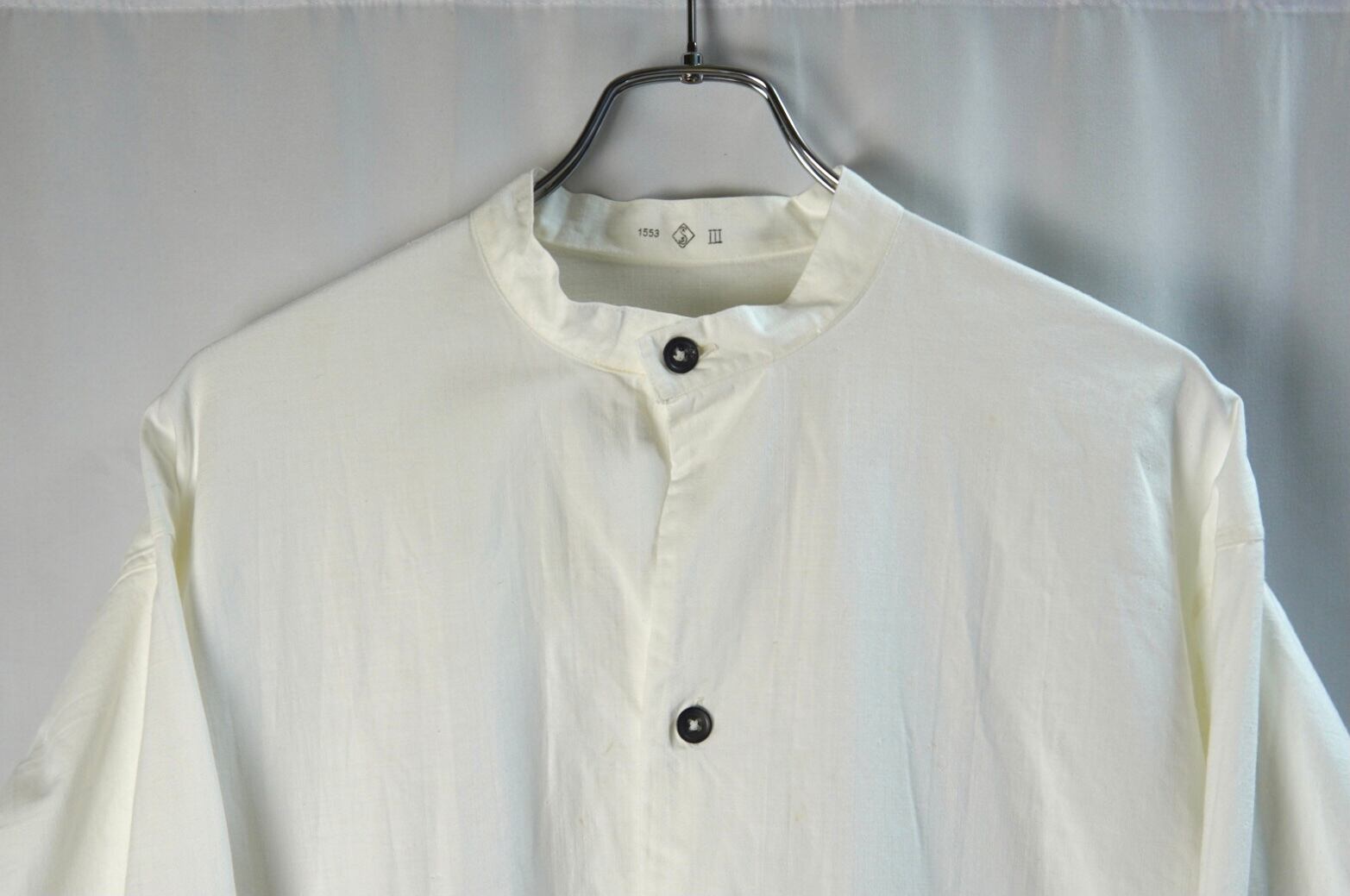 首元と、袖にはメタルボタンが使用されています。こちらはあるしっかりとしたコットン素材で、ホワイトカラー。