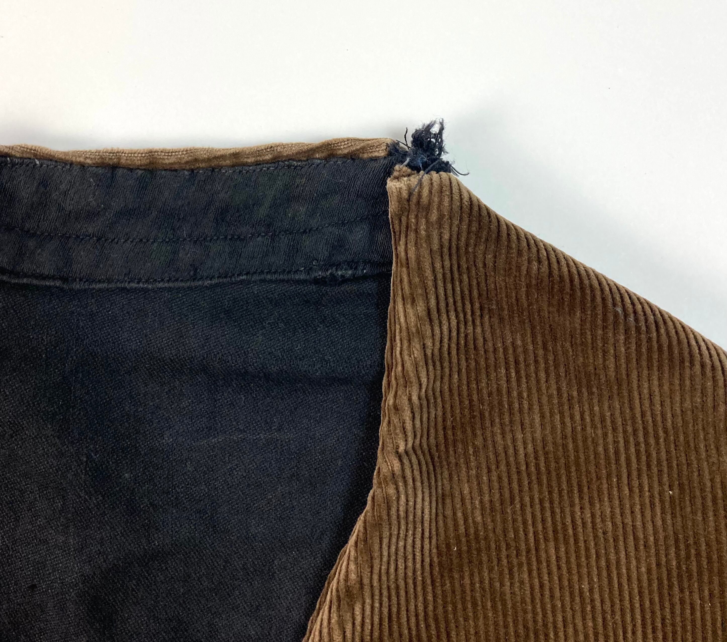 前見頃はブラウンのコーデュロイで、後ろ見頃と裏地がブラックのサテン生地。