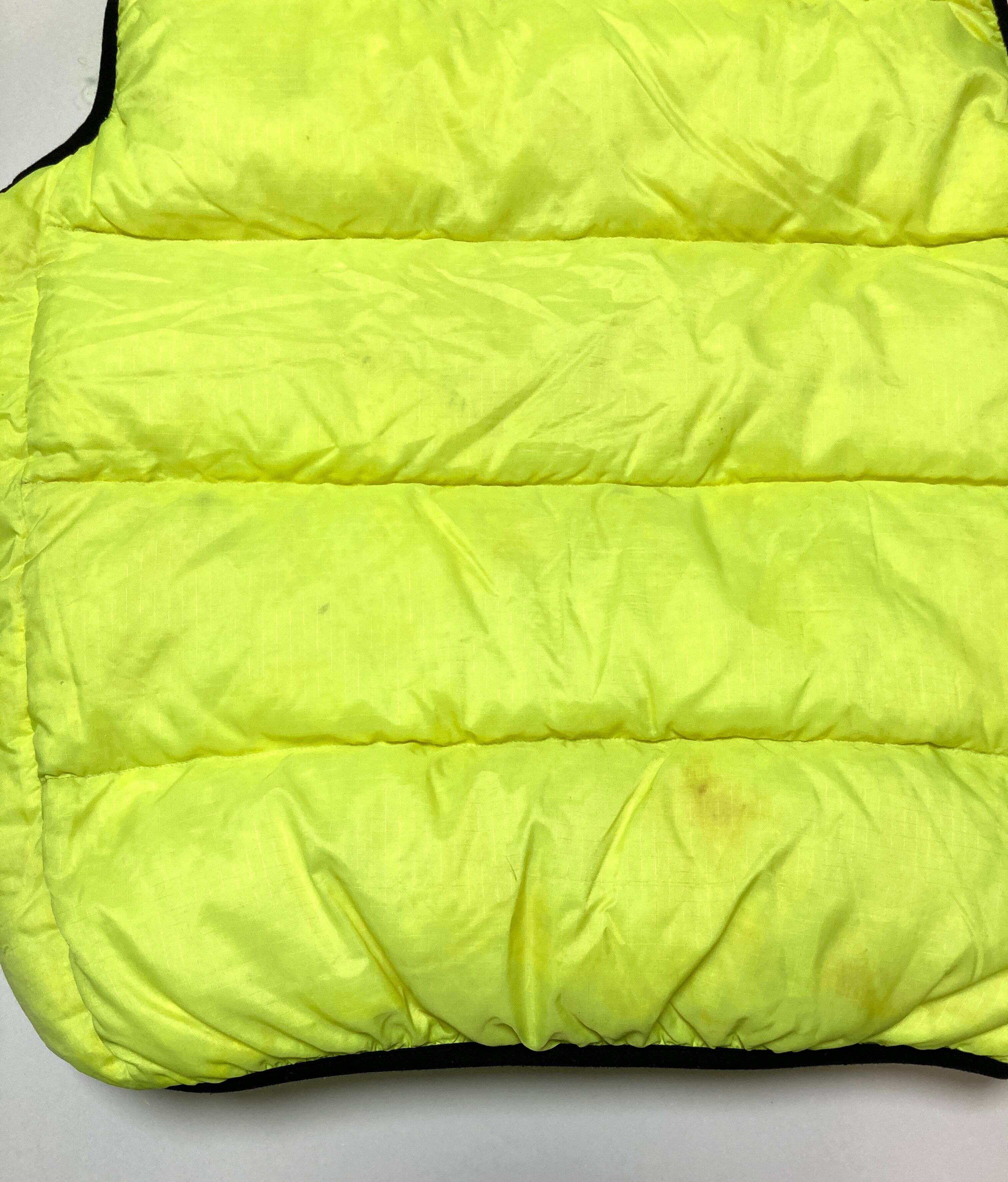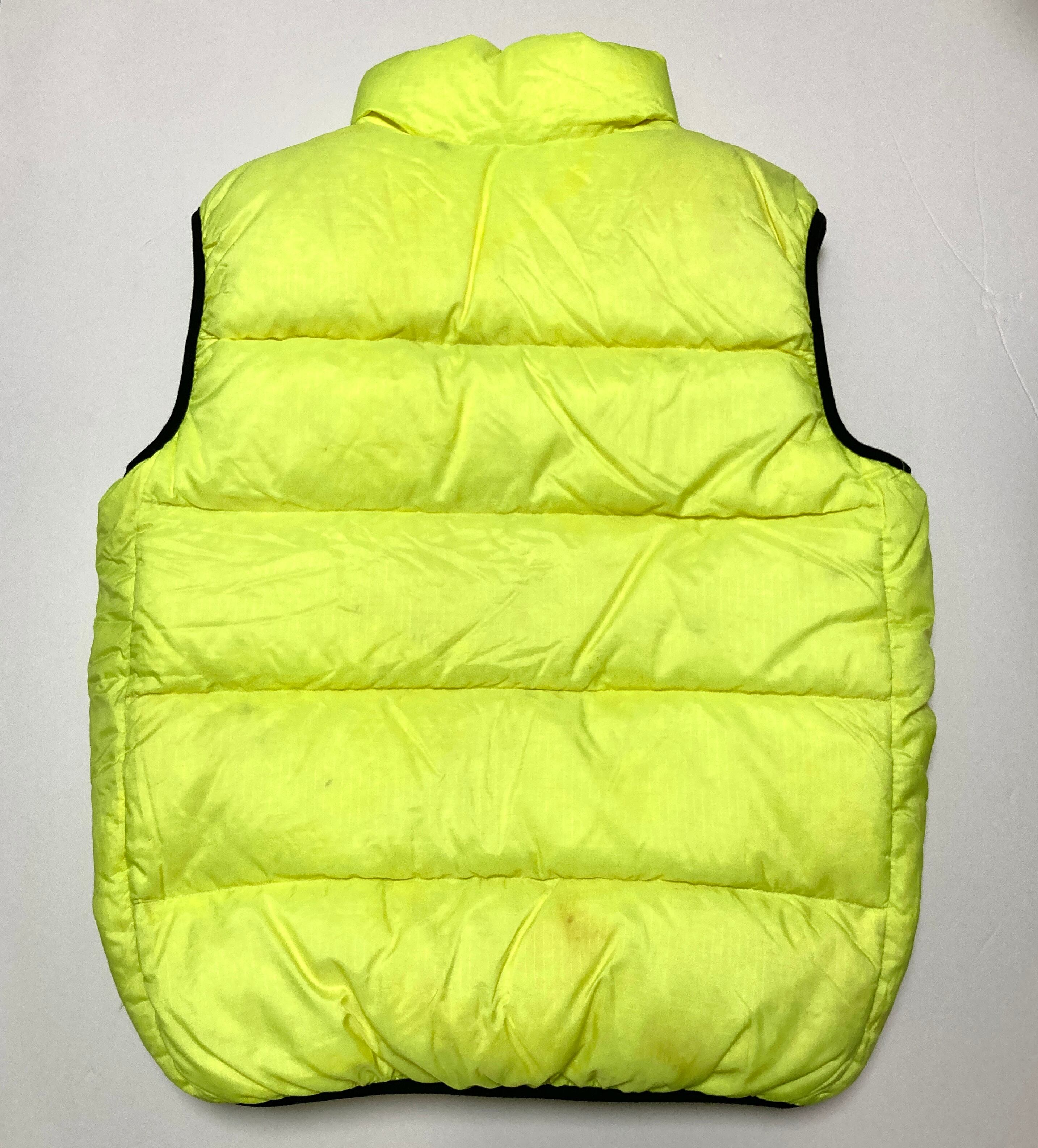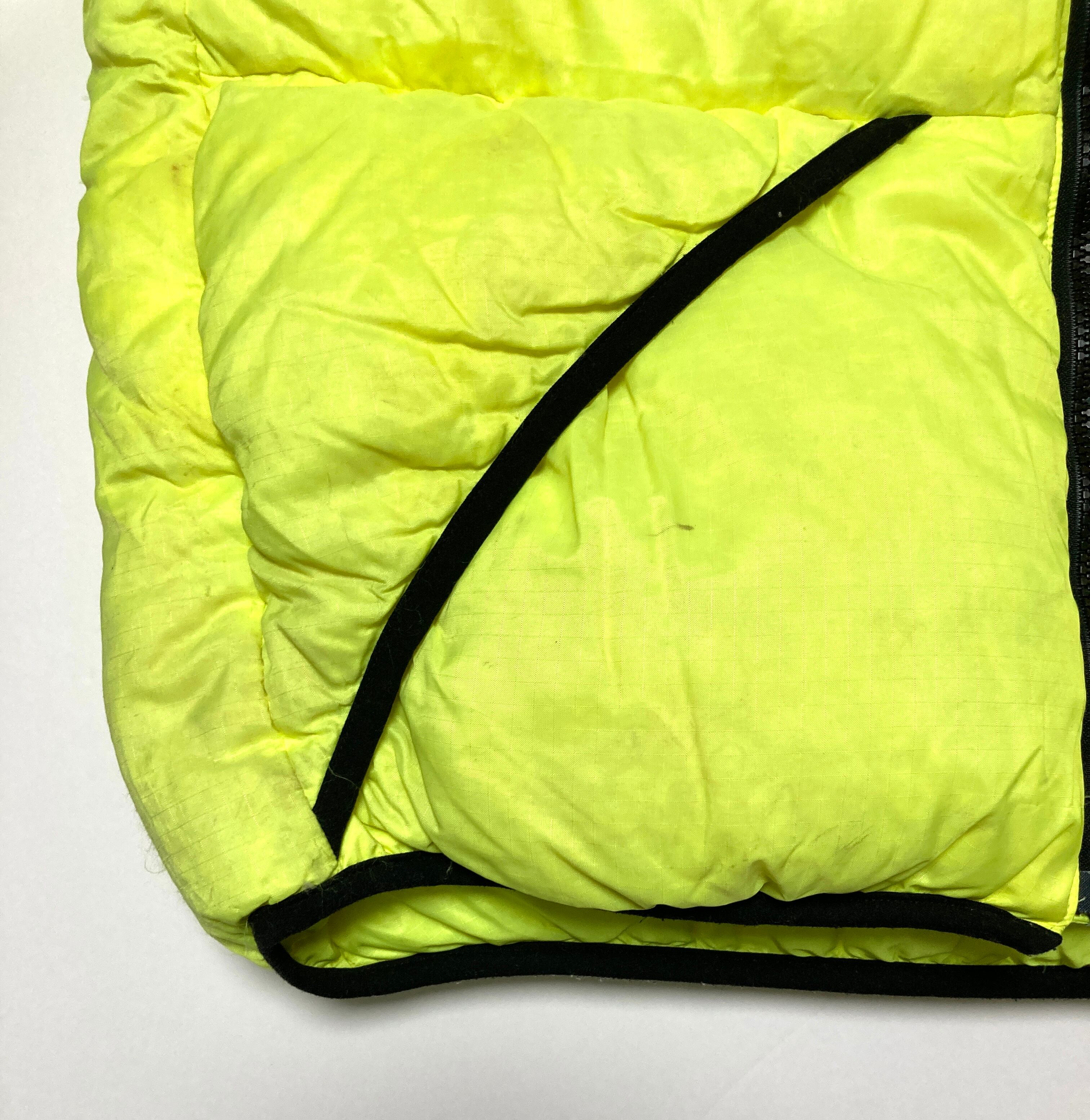USA製FEATHERED FRIENDS HELIOSのダウンベスト。色味は色鮮やかな蛍光イエロー。本当のアルピニストが作るダウン。防寒製も間違いありません。