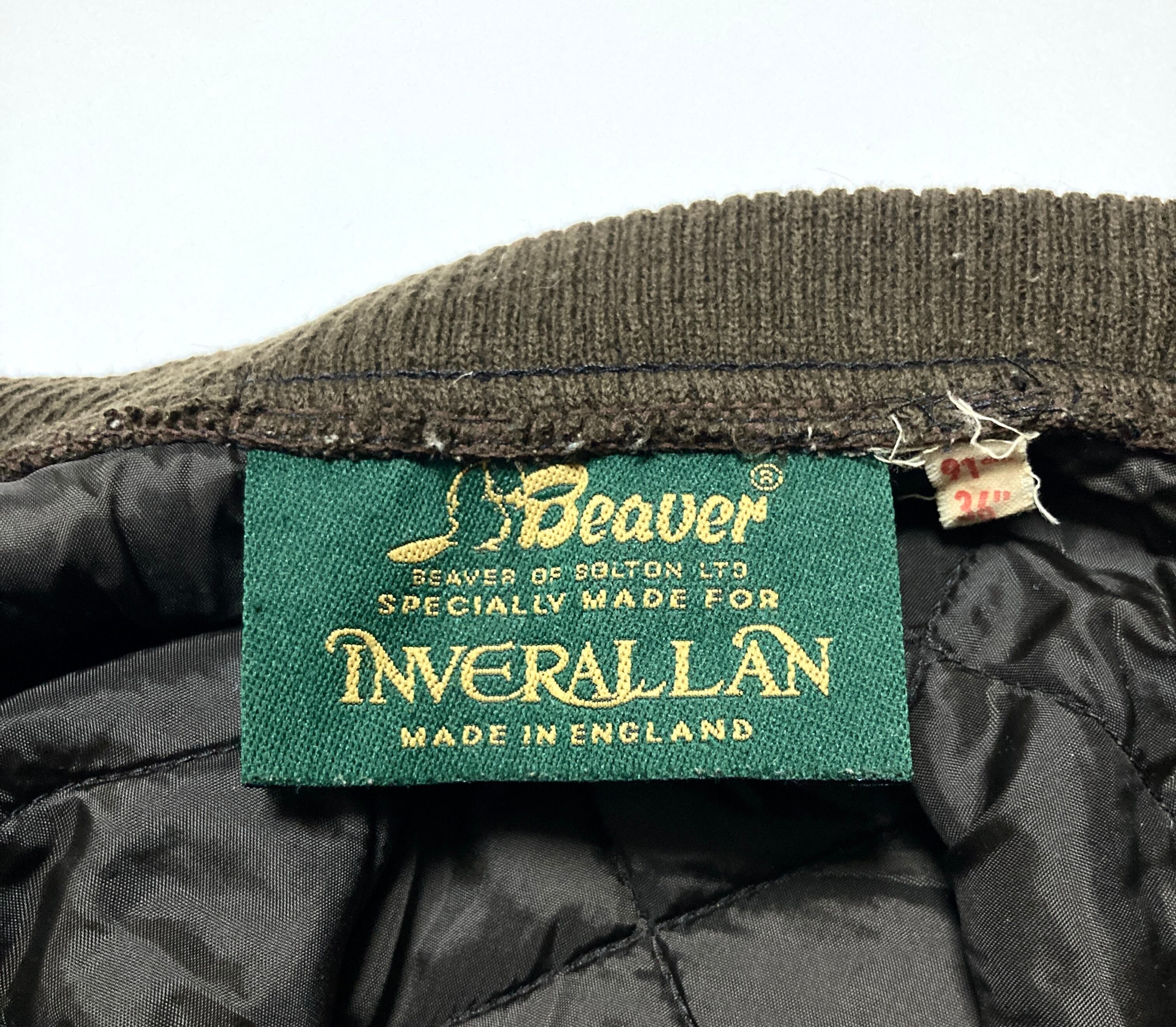 インバーアラン、ダブルネームのキルティングベスト。深いブラウンにショルダーパッチ仕様
