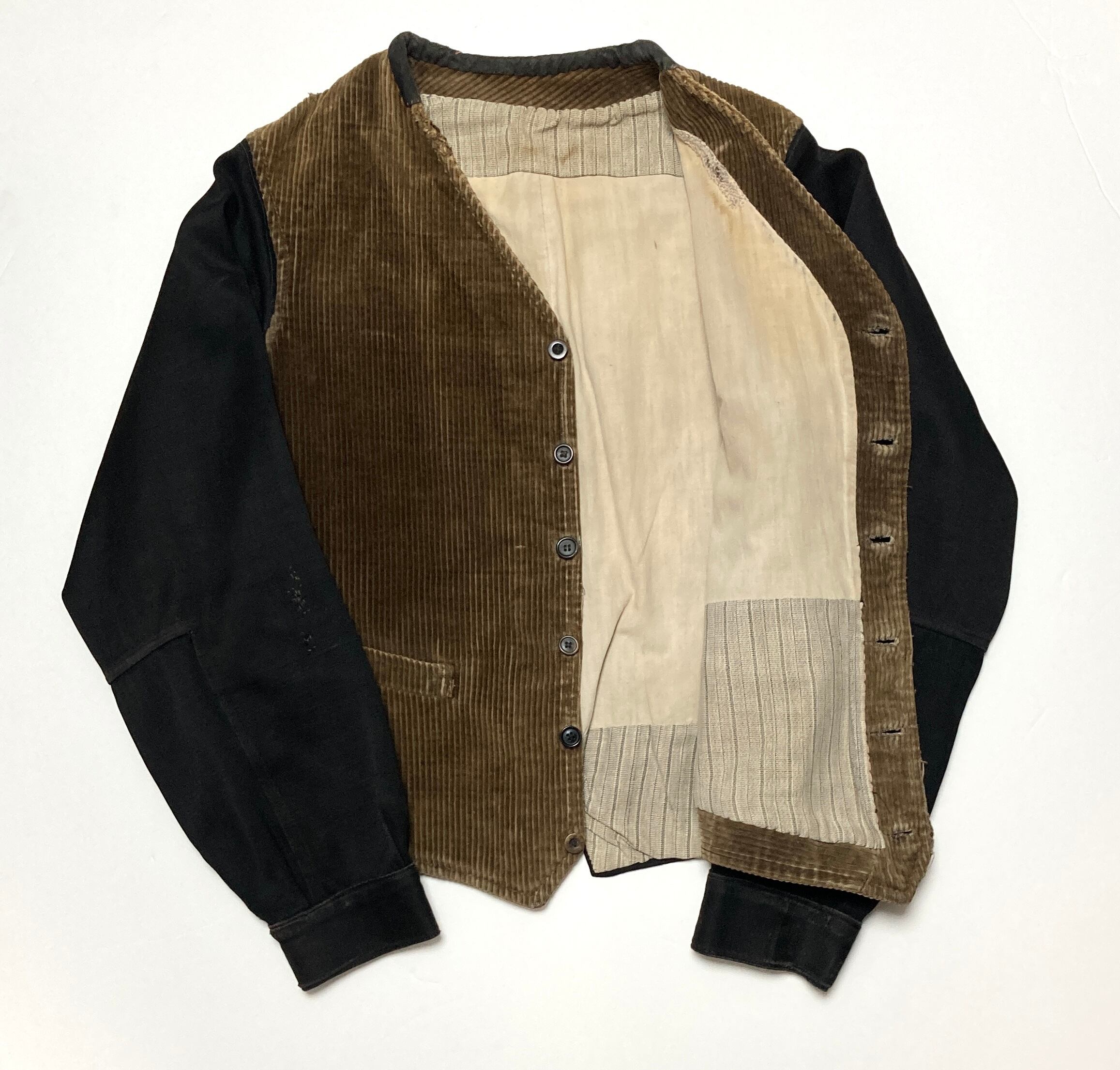 20-30'S FRENCH CORDUROY / BLACK SATIN GILET JACKET