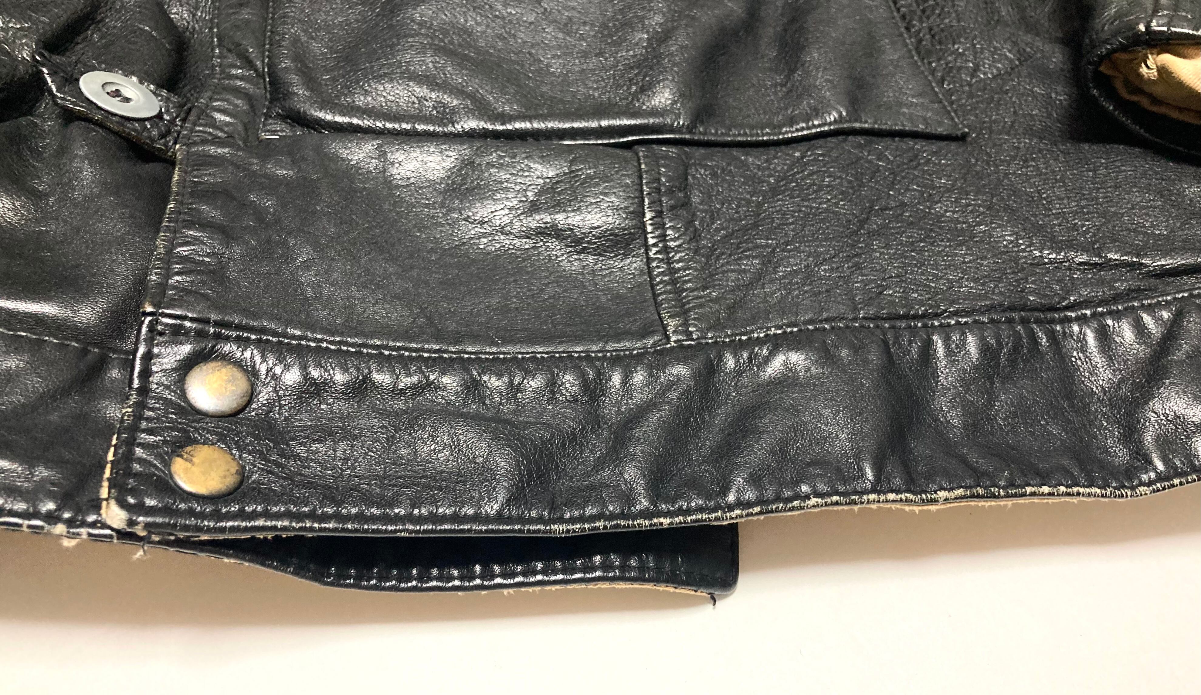 80年代ごろのスウェーデン軍タイプのレザーモーターサイクルジャケット。台湾製。色味はブラックです。