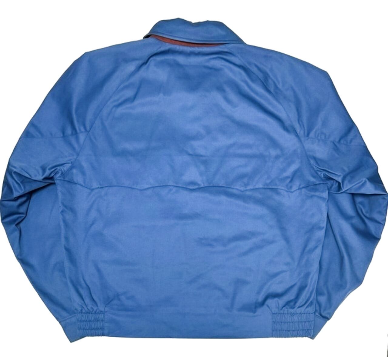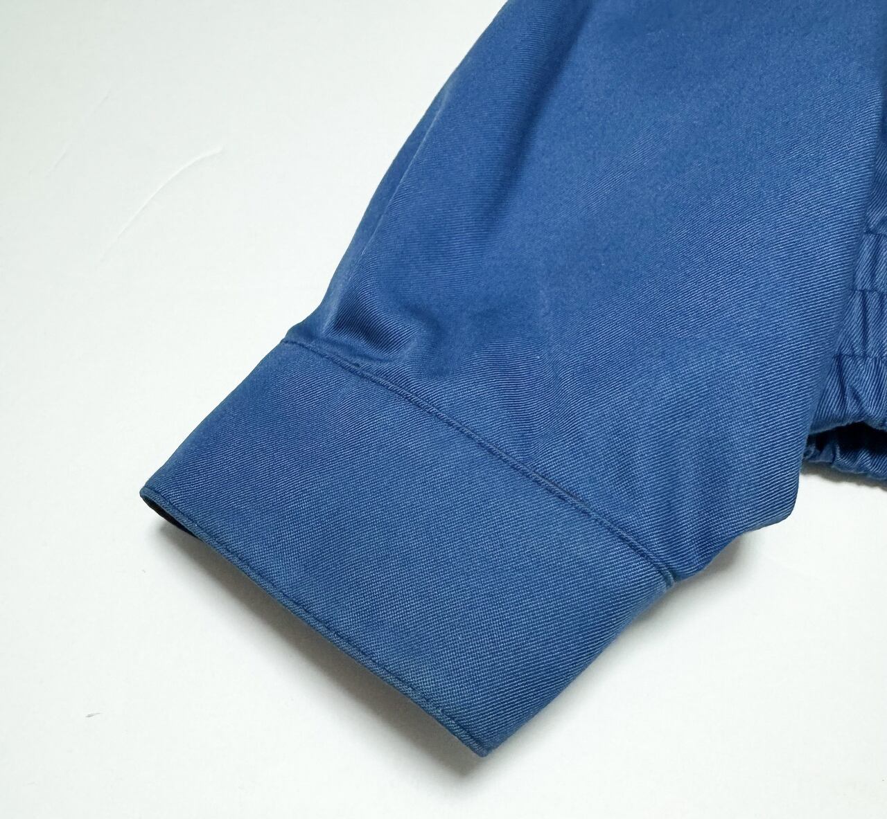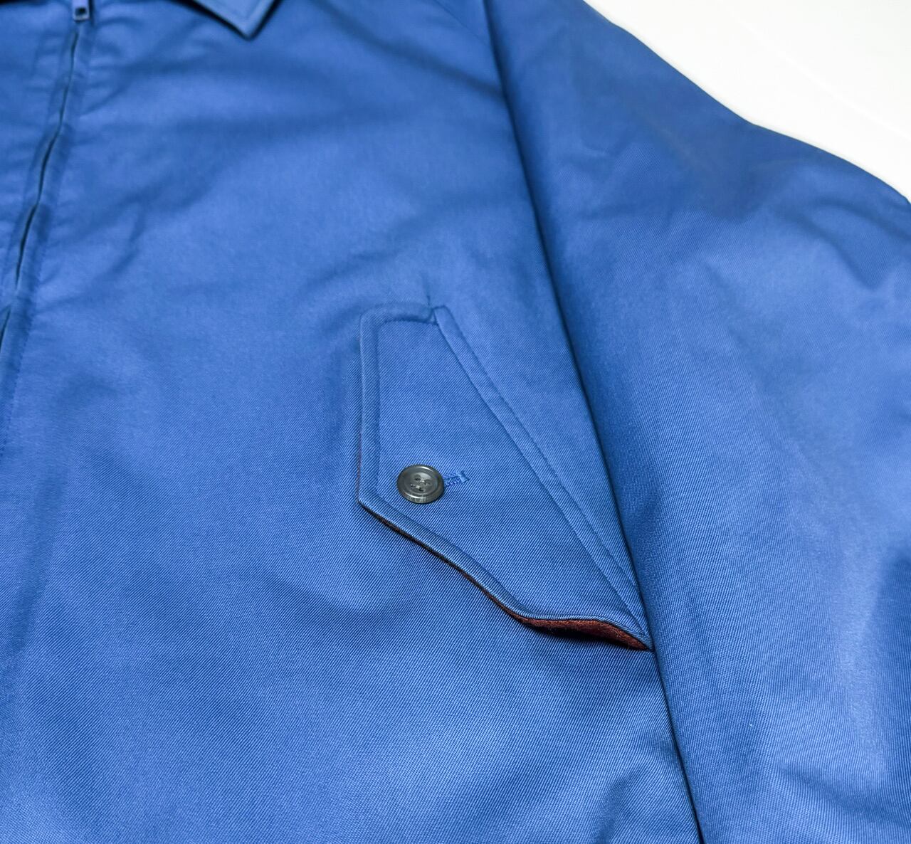 鮮やかなブルーに、レンガ色のウールの裏地という珍しい配色。