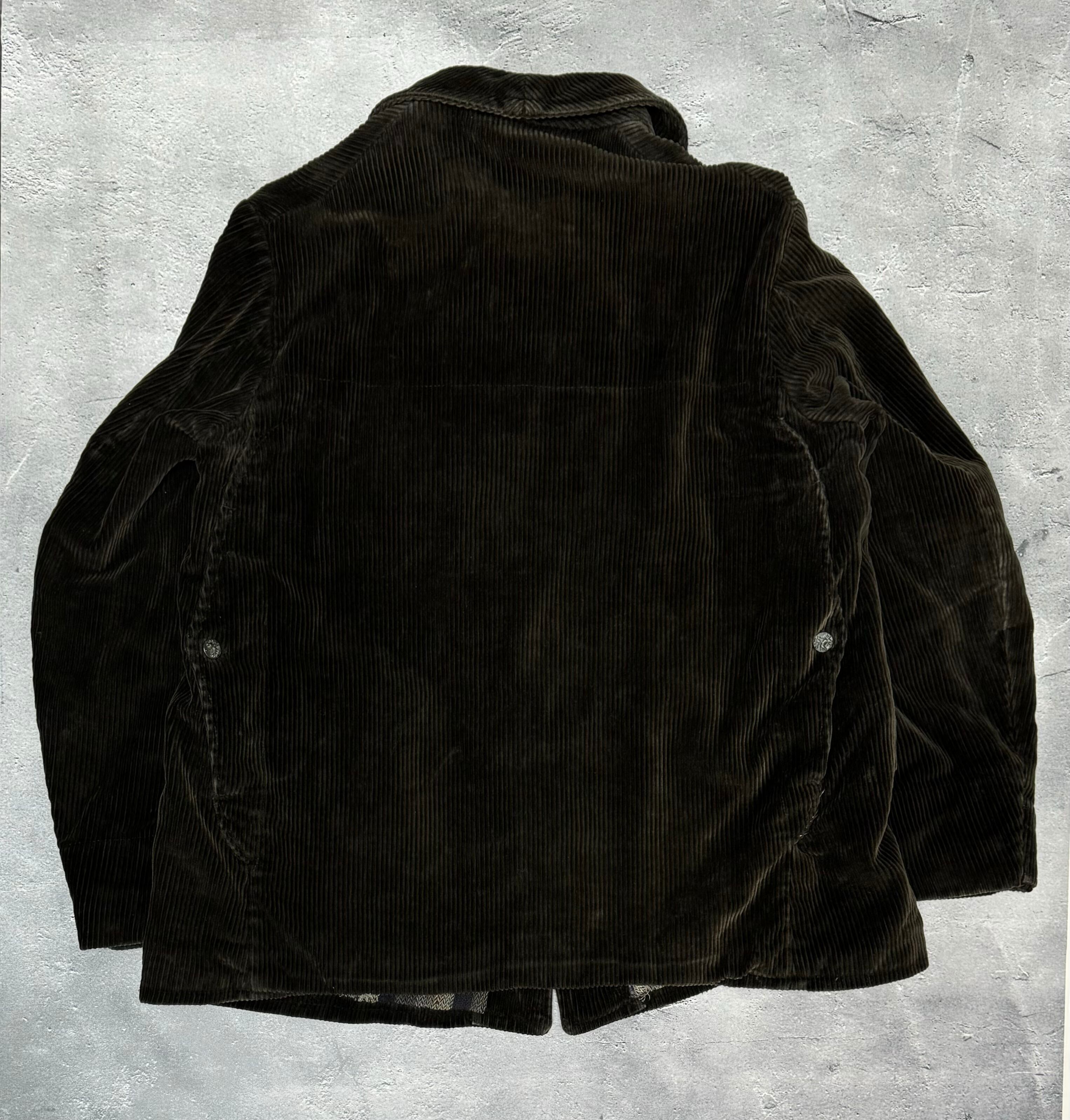 全体的な使用感、生地のヘタり、褪色。ボタンの鯖。裏地に補修箇所があります。またボタンは不揃いです。