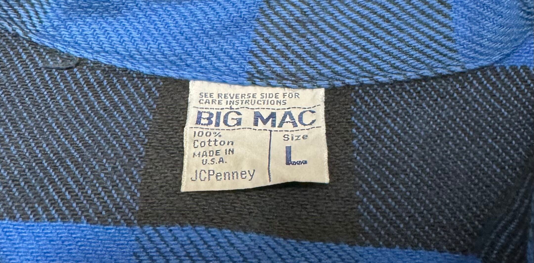 70年代のビッグマックのコットンベビーフランネル。青黒のブロックチェックでサイズLと、かなり条件揃ってます。