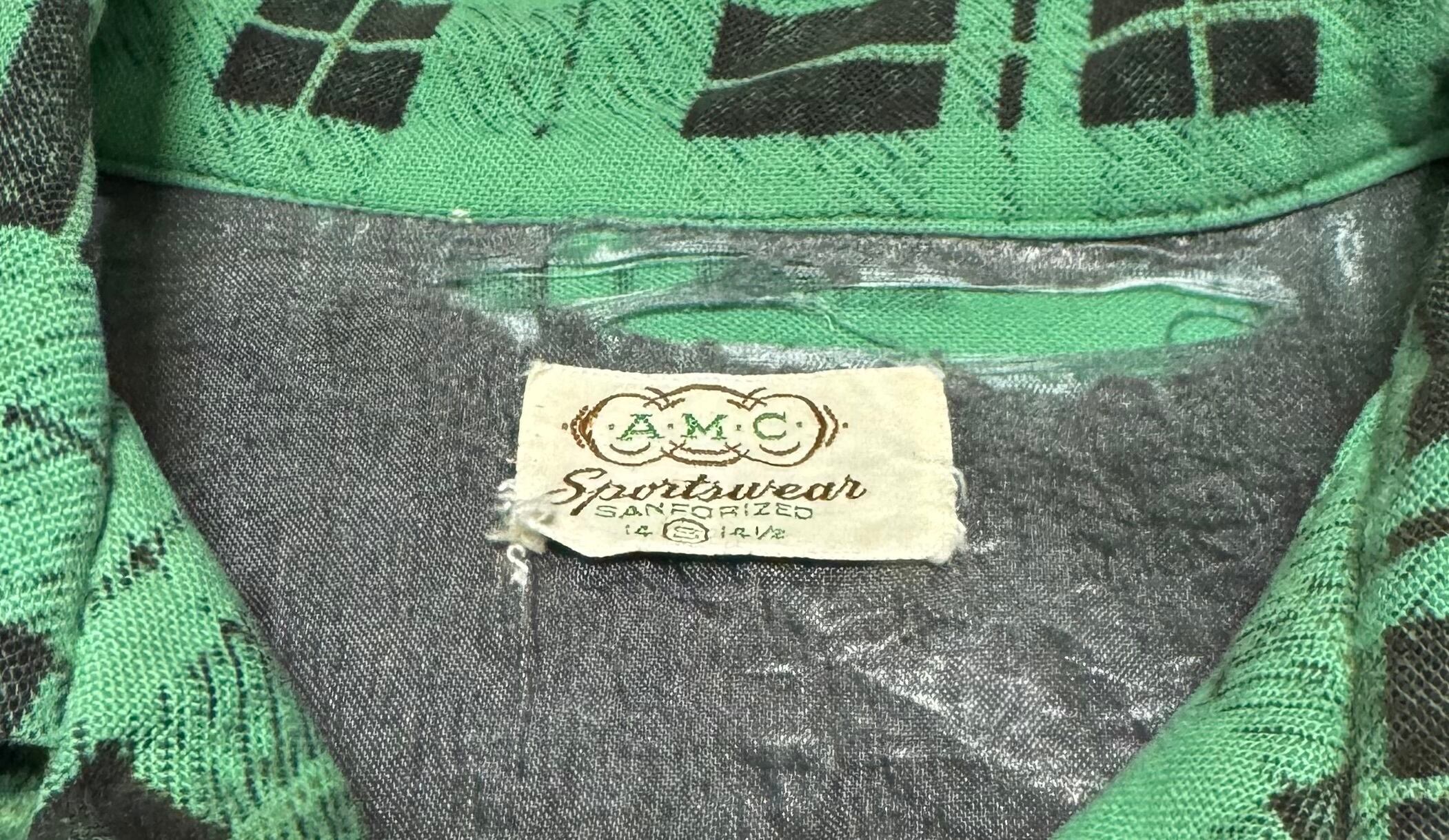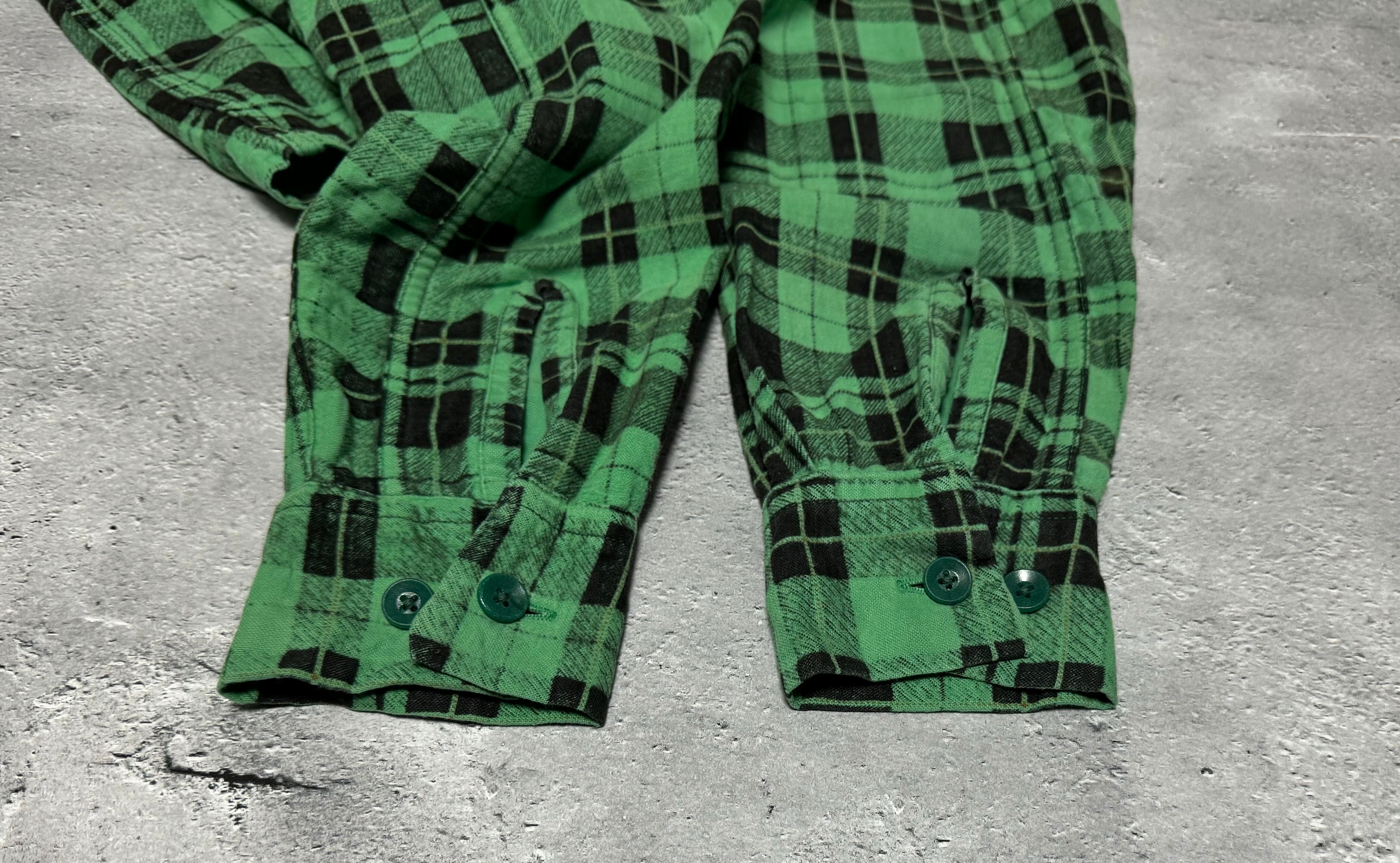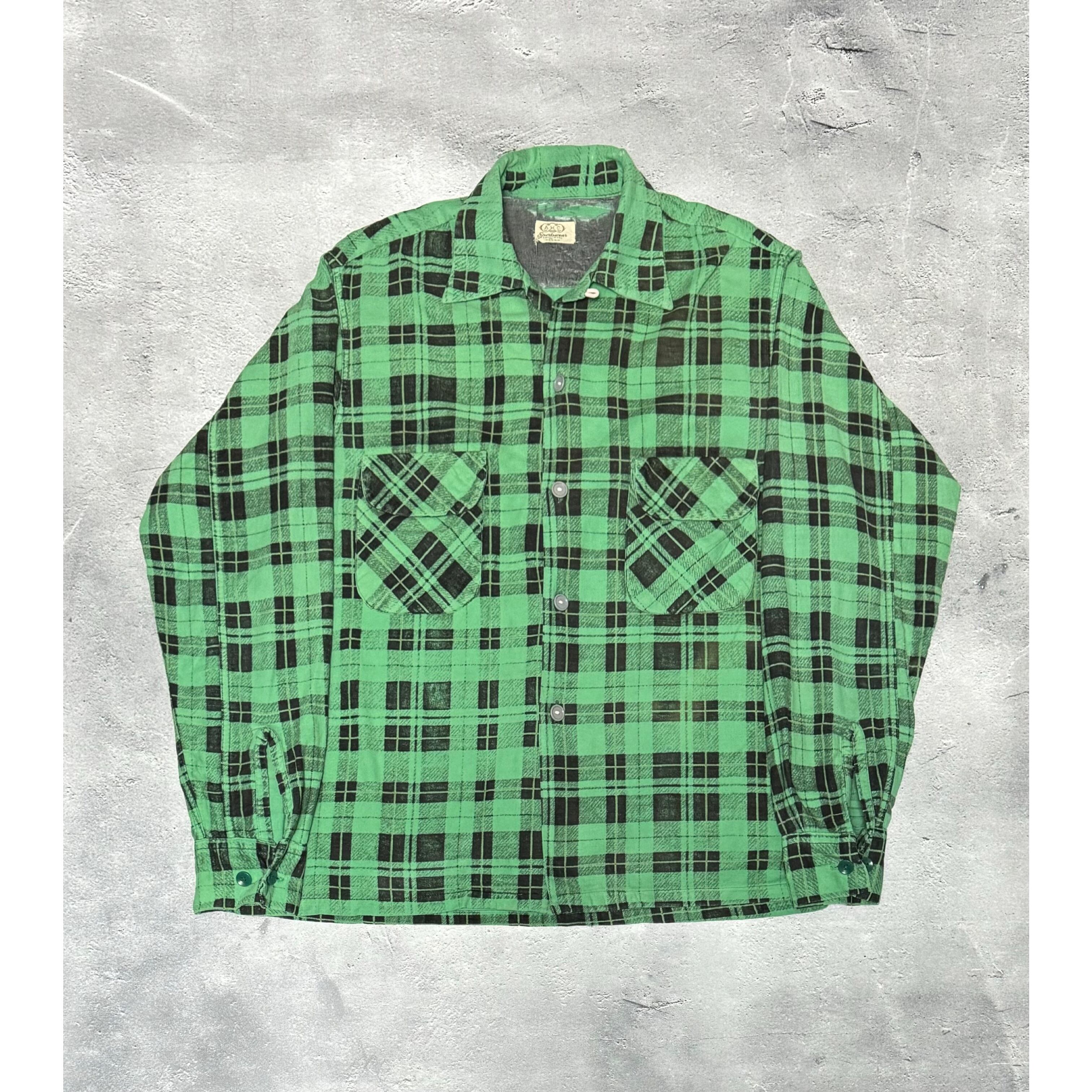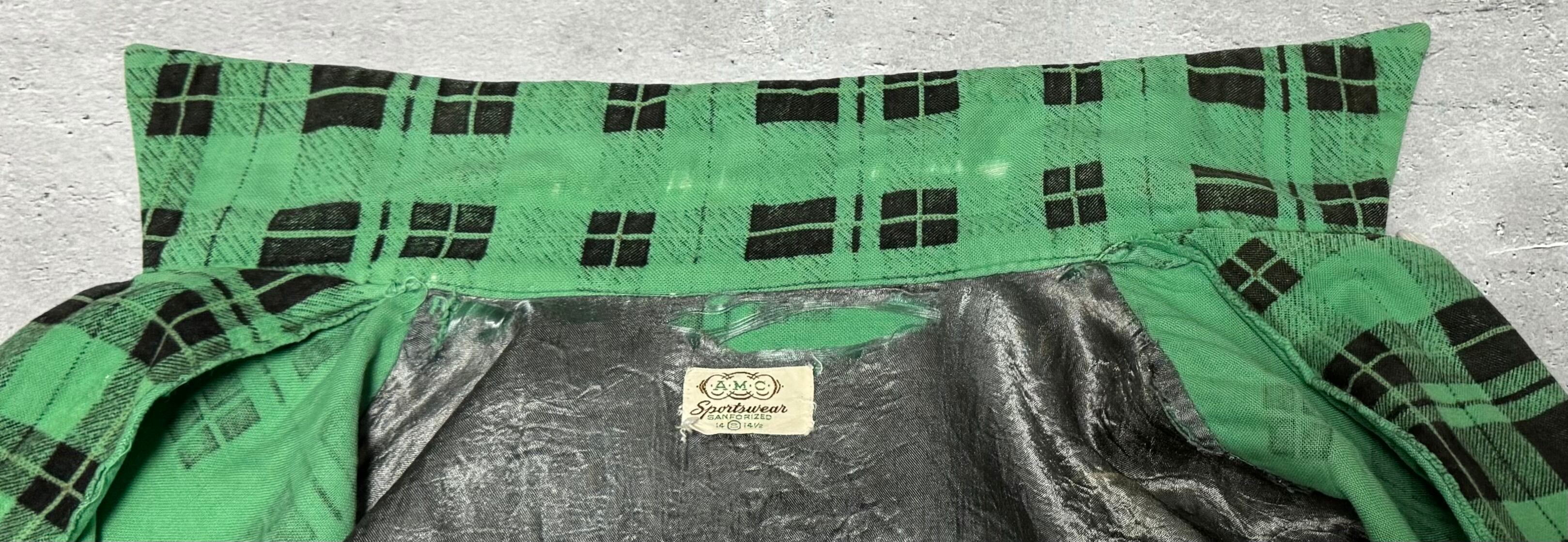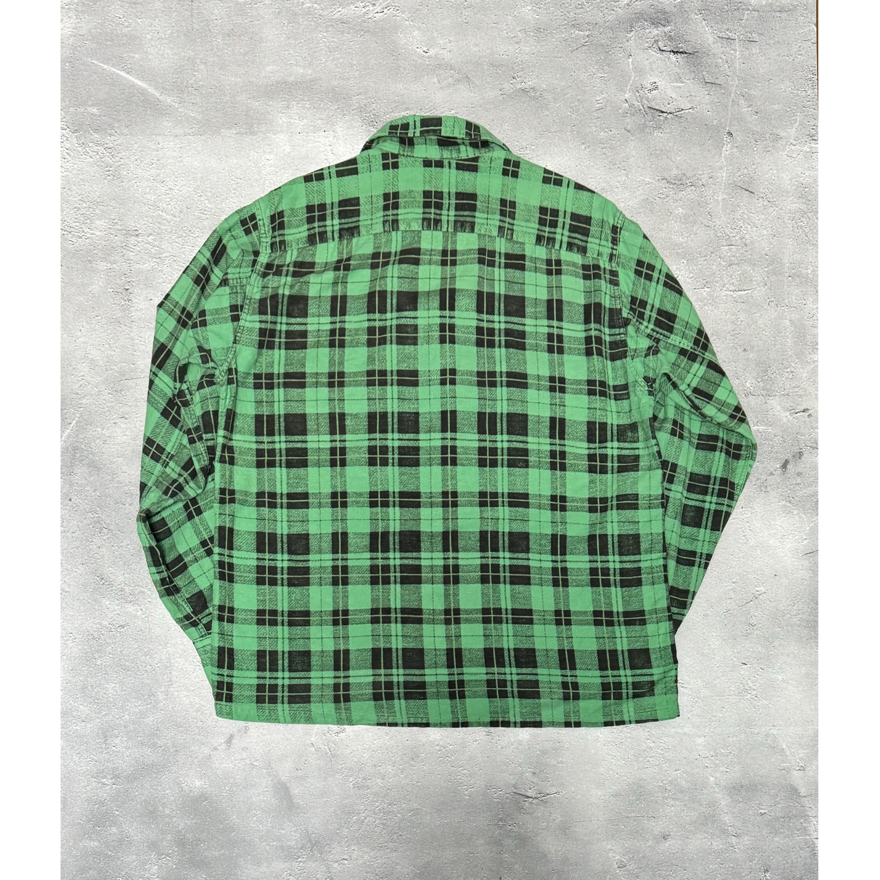 緑と黒の非常に配色の良いチェック柄のビンテージシャツです。