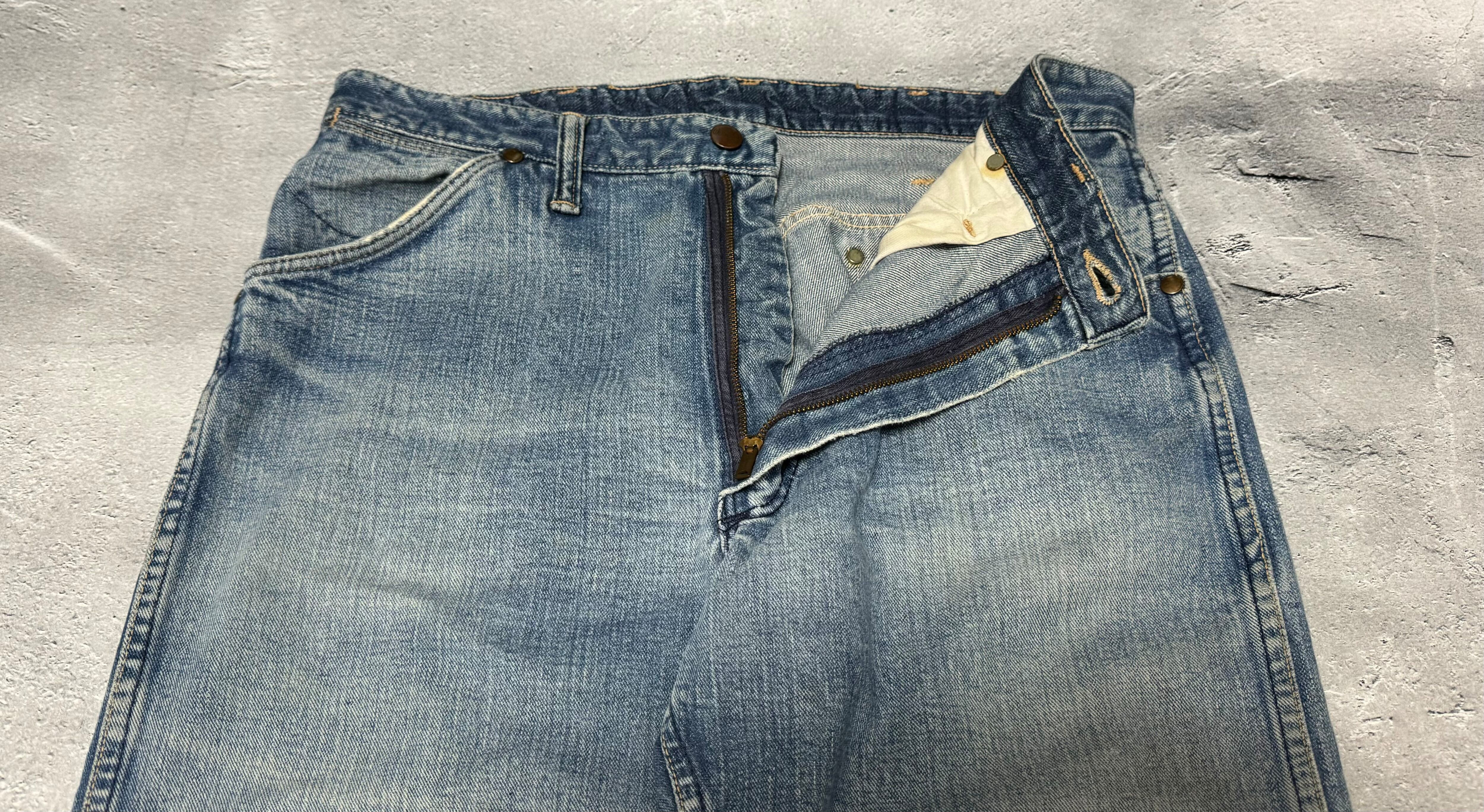 WRANGLERの中では癖の無いルーズなストレートの13MWZ。Levi'sで言うビックEモデルに相当し、大分青くなっていますが、個人的には好きな色落ち加減です。
