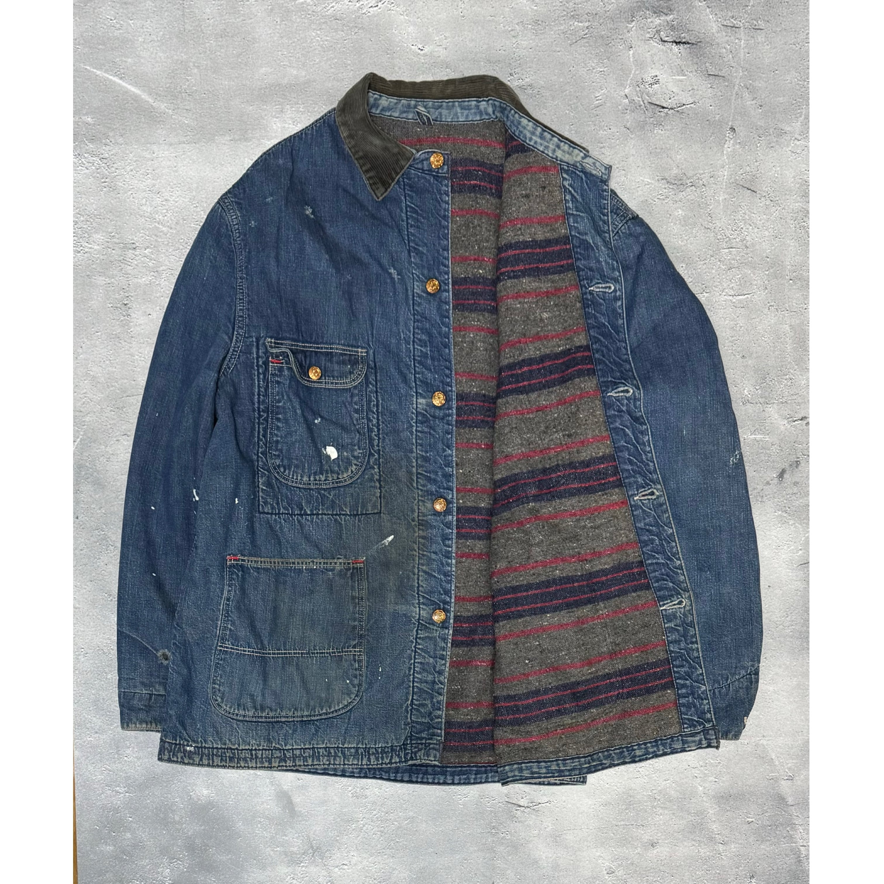 コーデュロイ襟、裏地ブランケット付きになります。