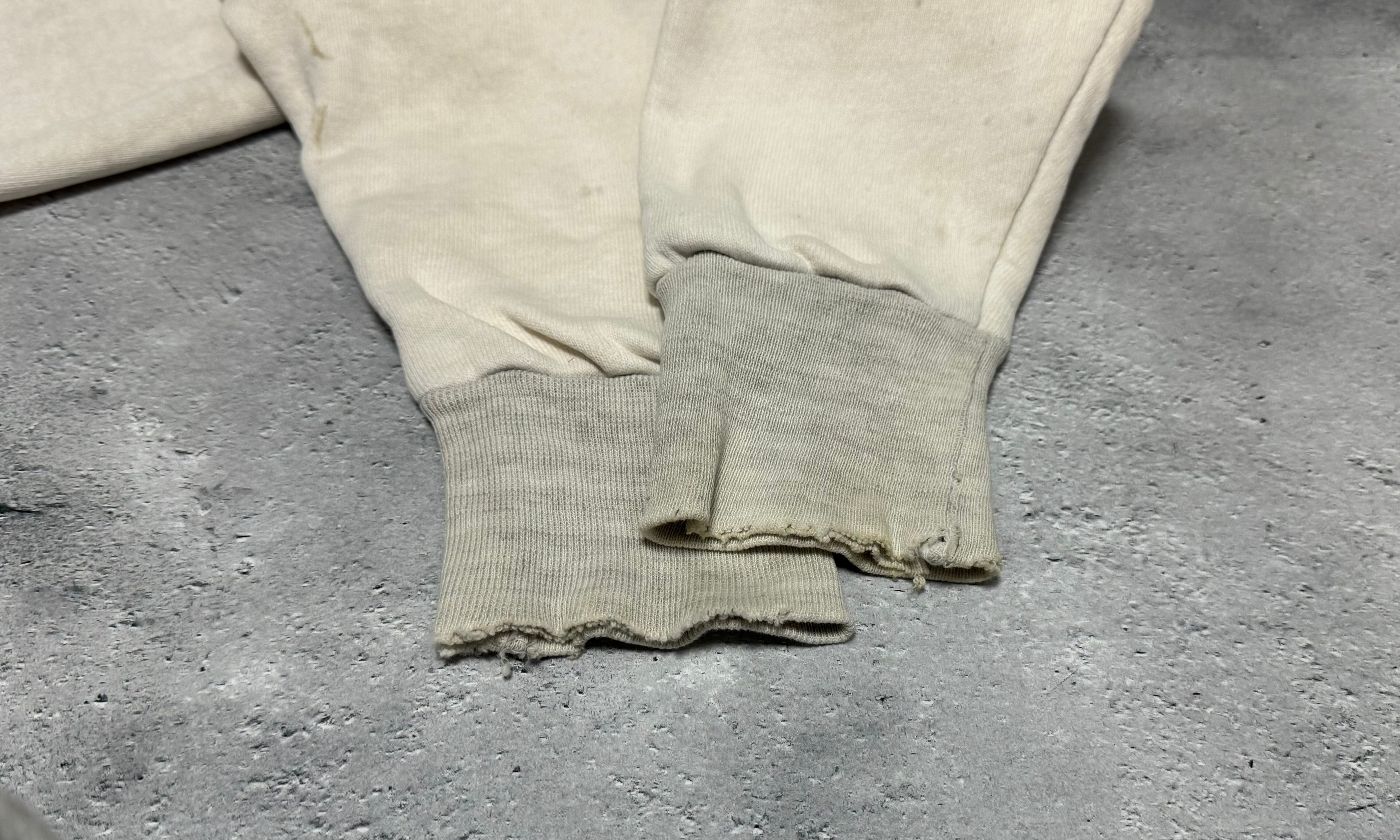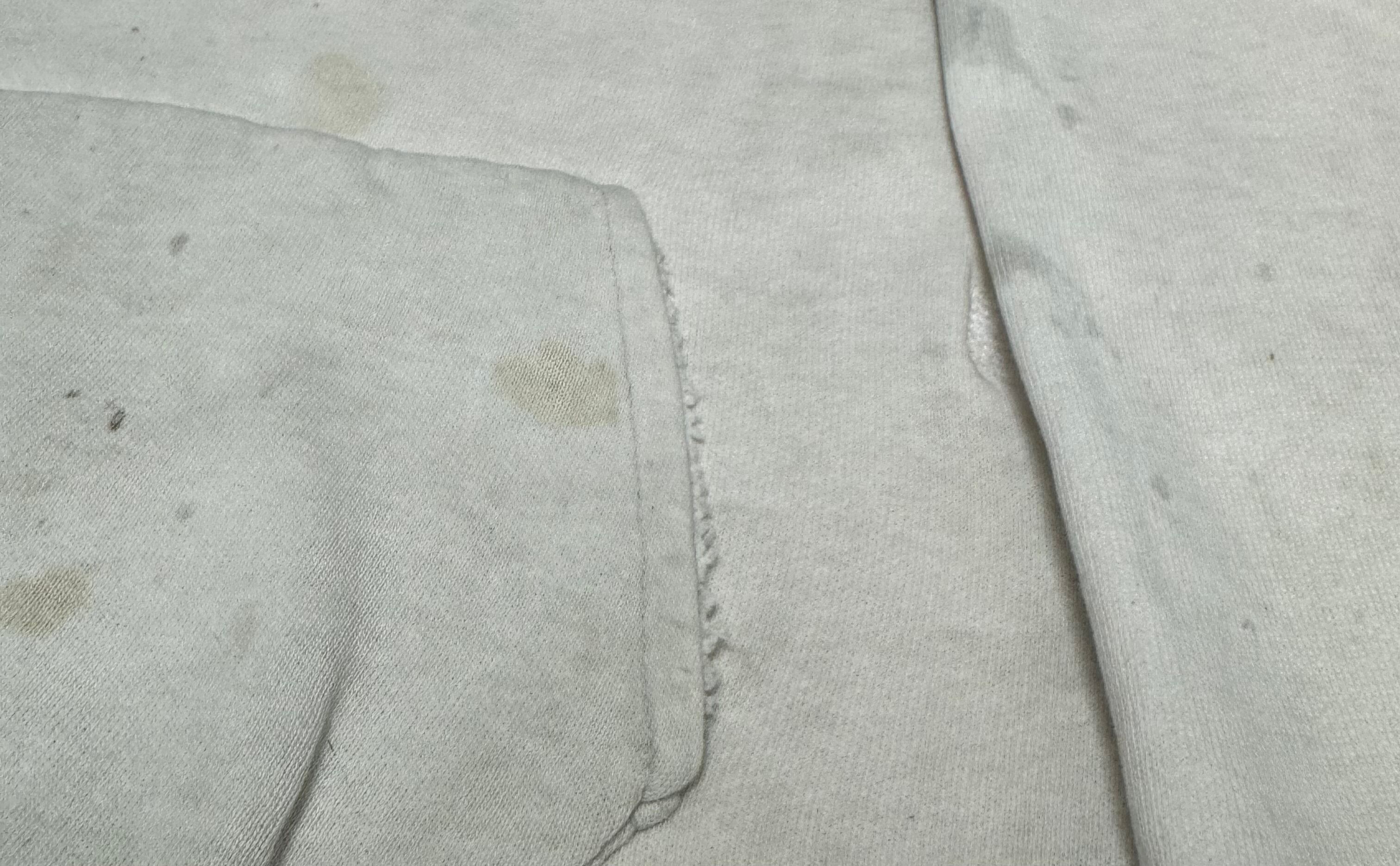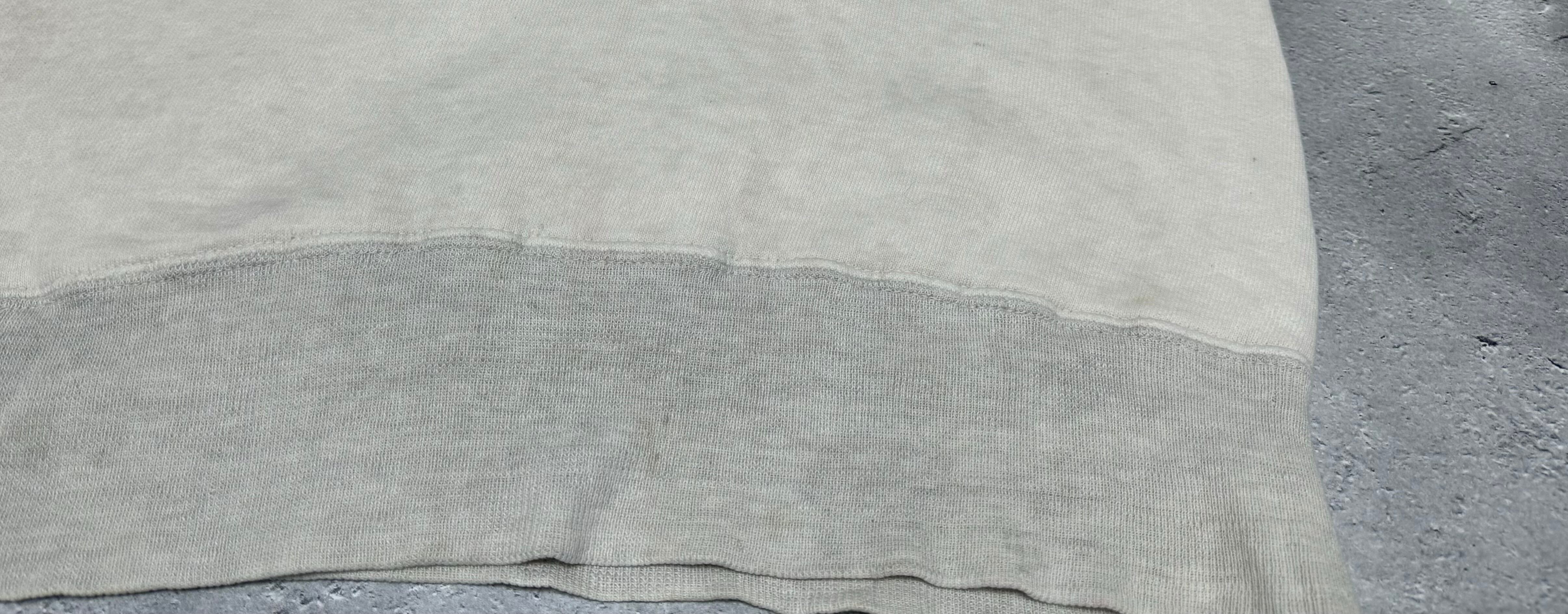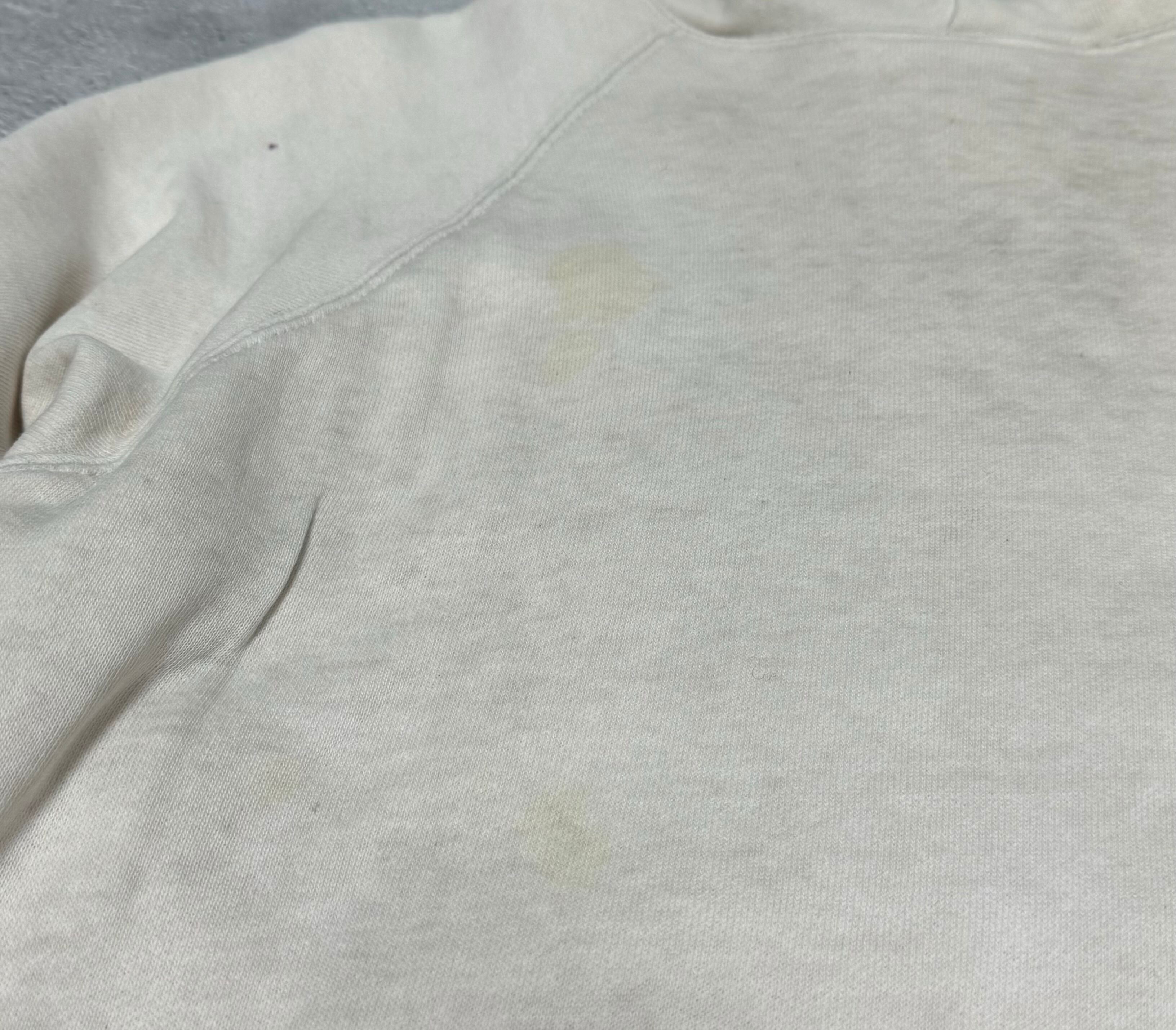 裏地はフード部分がグレー、見頃が色移りしたホワイトで、サーマル地のダブルフェイス仕様。肩はラグラン。いわゆるボロですが、雰囲気は抜群なので張り切って来てみるのもいいかなと。サイズも比較的大きめです。