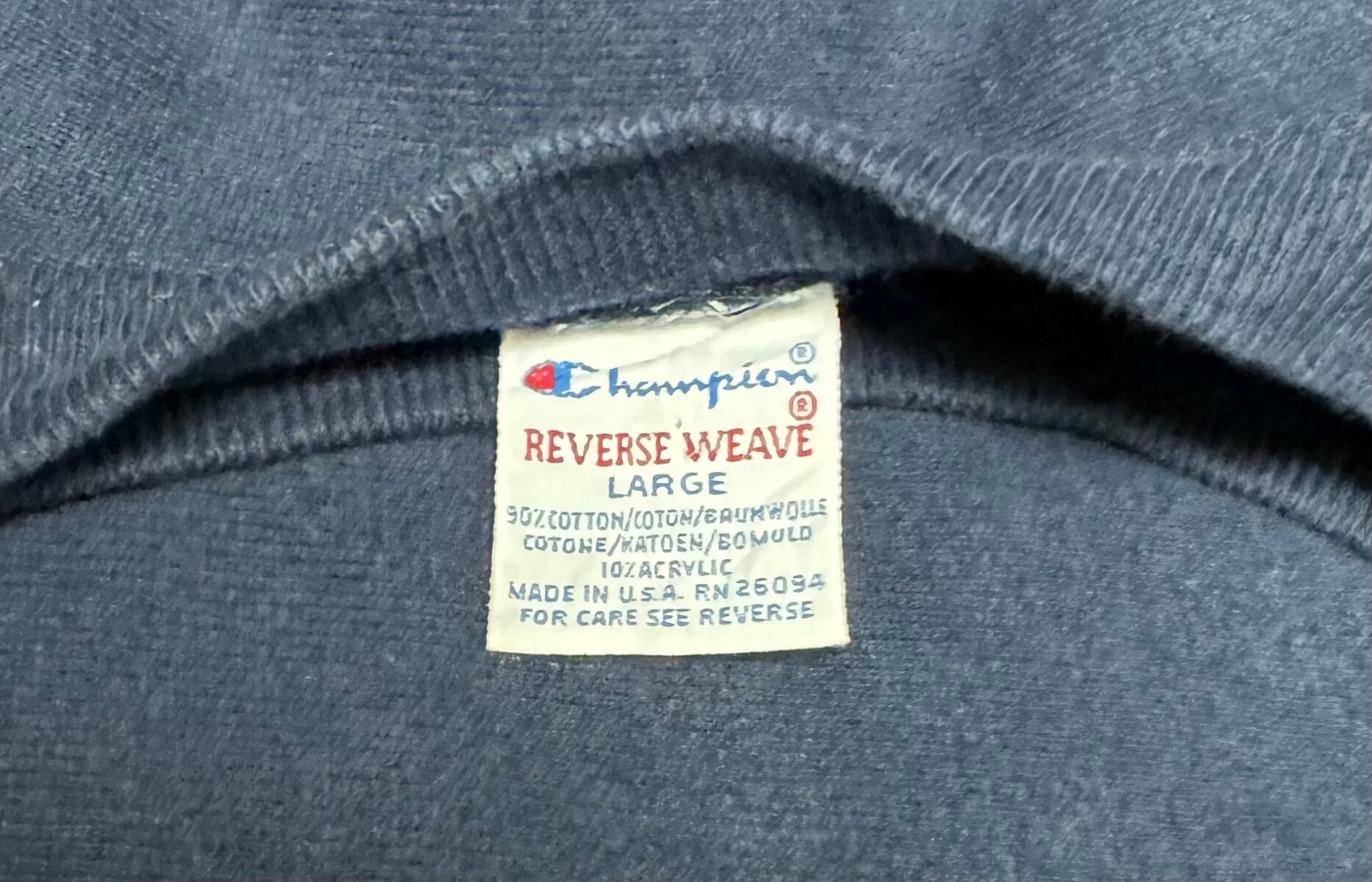 90年代刺繍タグ、エネイビーのボディにPENN STATEのフェルトワッペン、アーチロゴ。シンプルにカッコいい一着です。