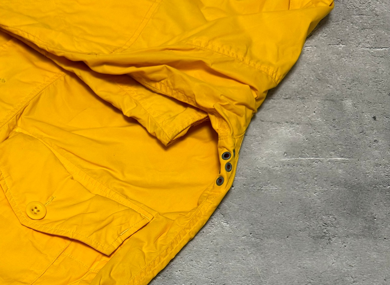 ハリのあるワックスコーティングが施されたコットン×ナイロン生地を使用した綺麗なイエロー。