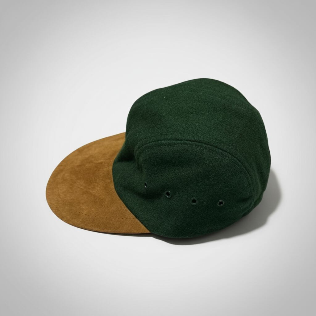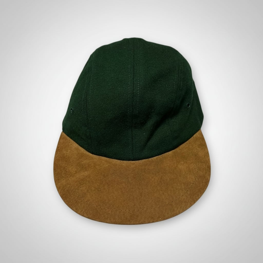 本体部はウール地、つばはレザースエードです。長めで大きなつばに、サイドにはベンチレーションホールが施されています。後方にストレッチゴムがありますのでフィット感にも優れています。