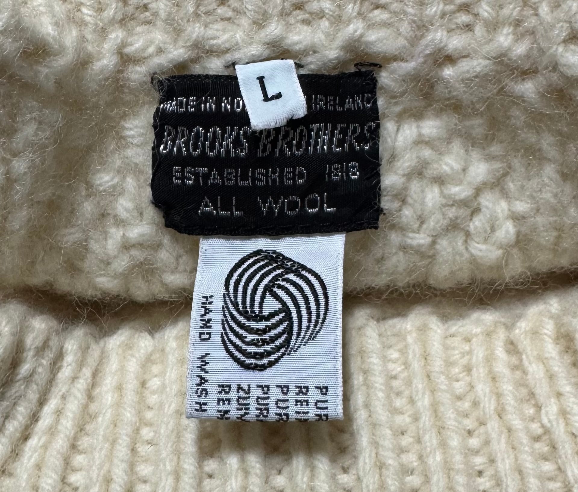アイルランド製のブルックスブラザーズのアランセーターになります。同ブランドで本格的なアランセーターはあまり見る機会もなく、珍しい一着だと思います。