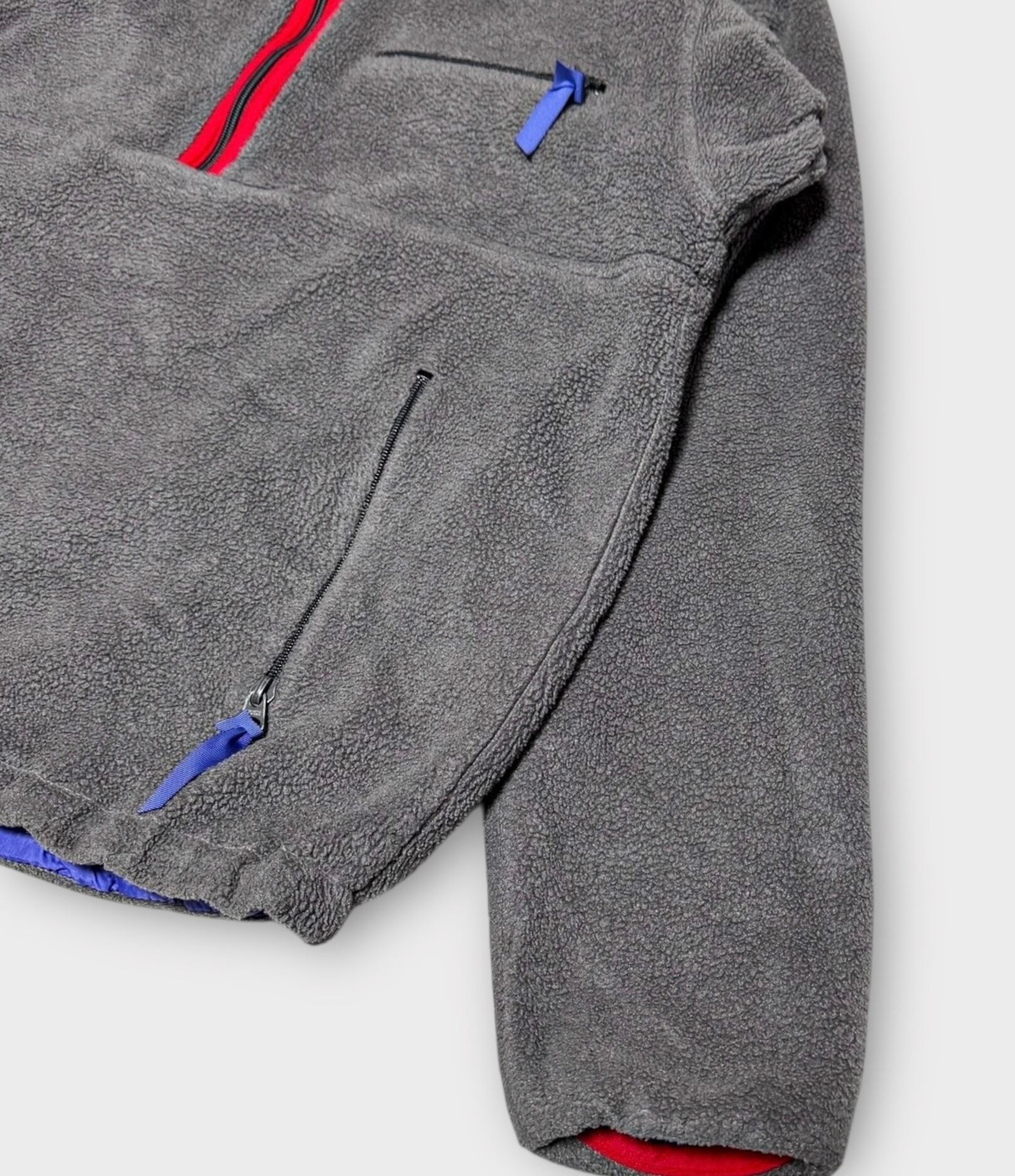 ナイロン側の袖や前見頃に汚れ、スレ等あります。フリース側は特に問題ありません。画像でご確認ください。