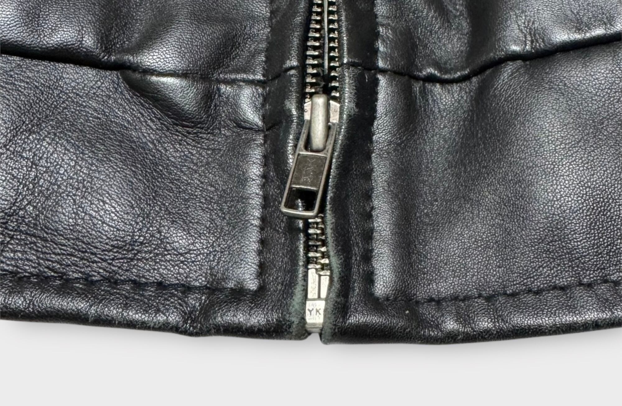 革の表地にはややスレがあり、裏地には汚れが見られますが、ユーズドアイテムに慣れている方であれば気にならず問題なく着用いただけるかと思います。