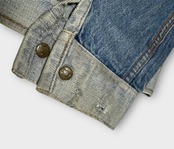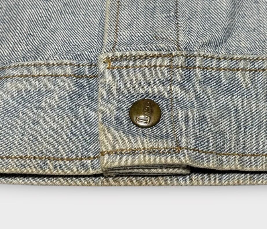 91-Bを思わせるポケットデザインが魅力的で、フルスナップ仕様により、どちらの面でもスマートな印象。襟がやや長めで、70年代らしいクラシックなデザインです。