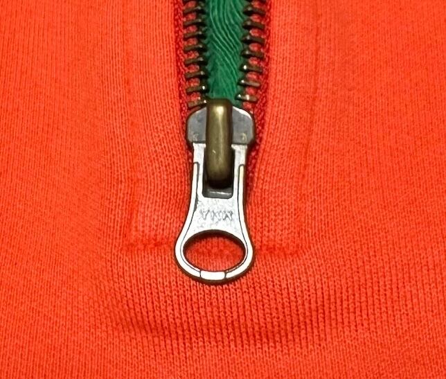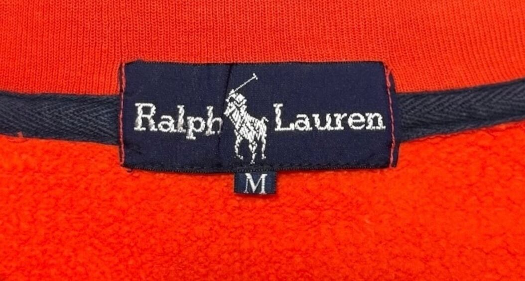 ヴィンテージ Polo Ralph Lauren の中でも特に人気が高く、コレクターにも愛される "RL-92" シリーズ。カラーは味のあるフェードオレンジ(サーモンピンクのようなニュアンスも)。袖ラグランスリーブに、襟の折り返しはグリーンで、ハイネックとしても折り返しても着こなし自在。裏起毛仕様で、柔らかな着心地も魅力です。