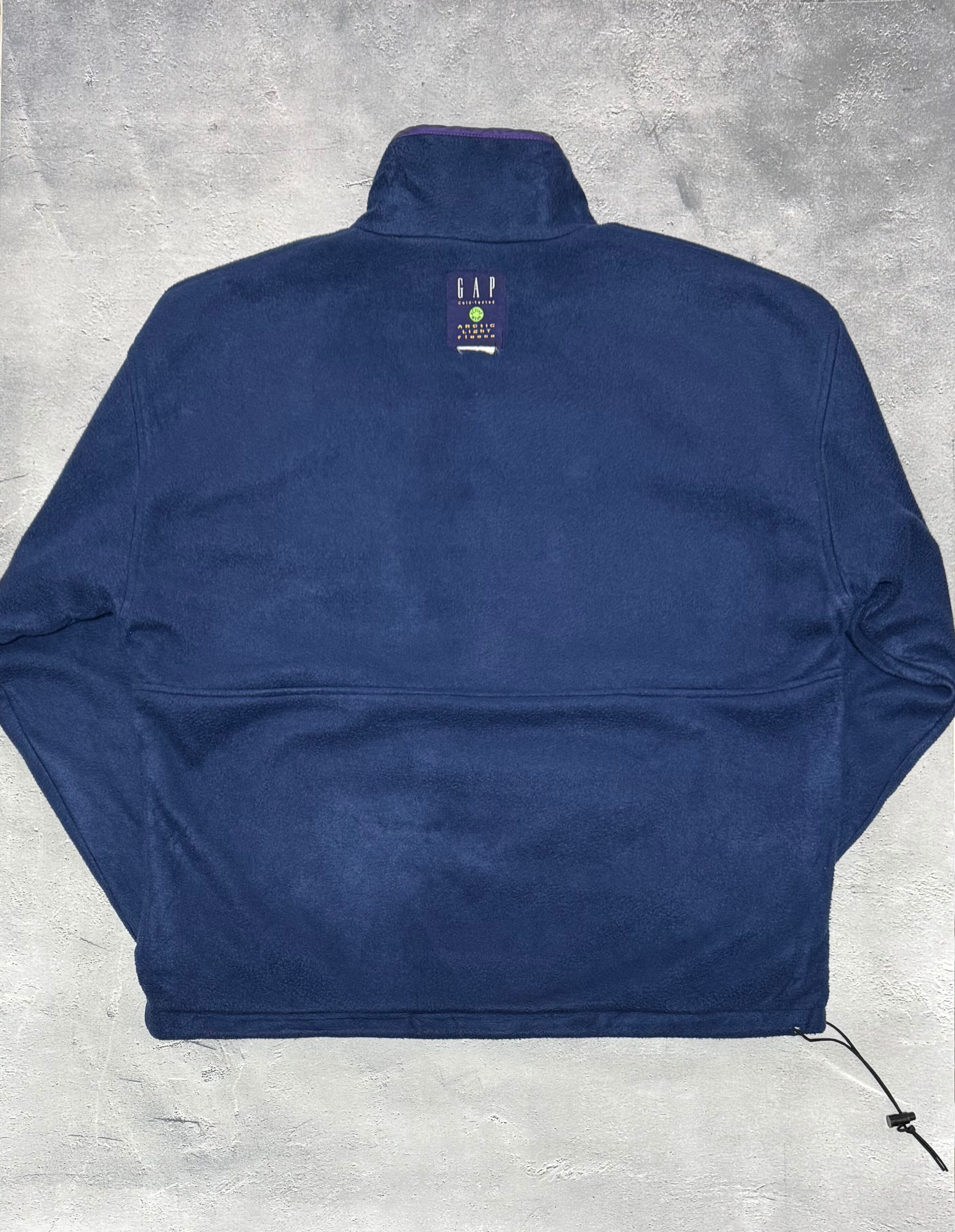 パタゴニアの名作『グリセードジャケット』を模して造られたと思われる、ギャップのリバーシブルジャケットです。表がパープルのナイロンシェル、裏はネイビーのフリース生地になります。サイズタグ欠損していますが、XL程度のビッグサイズになります。