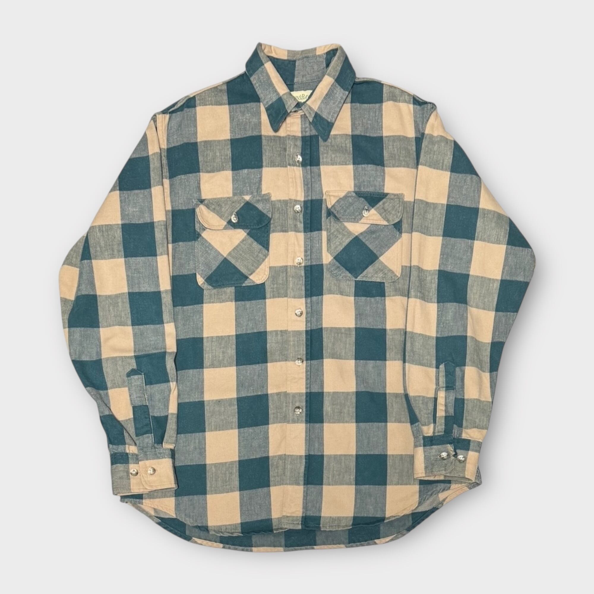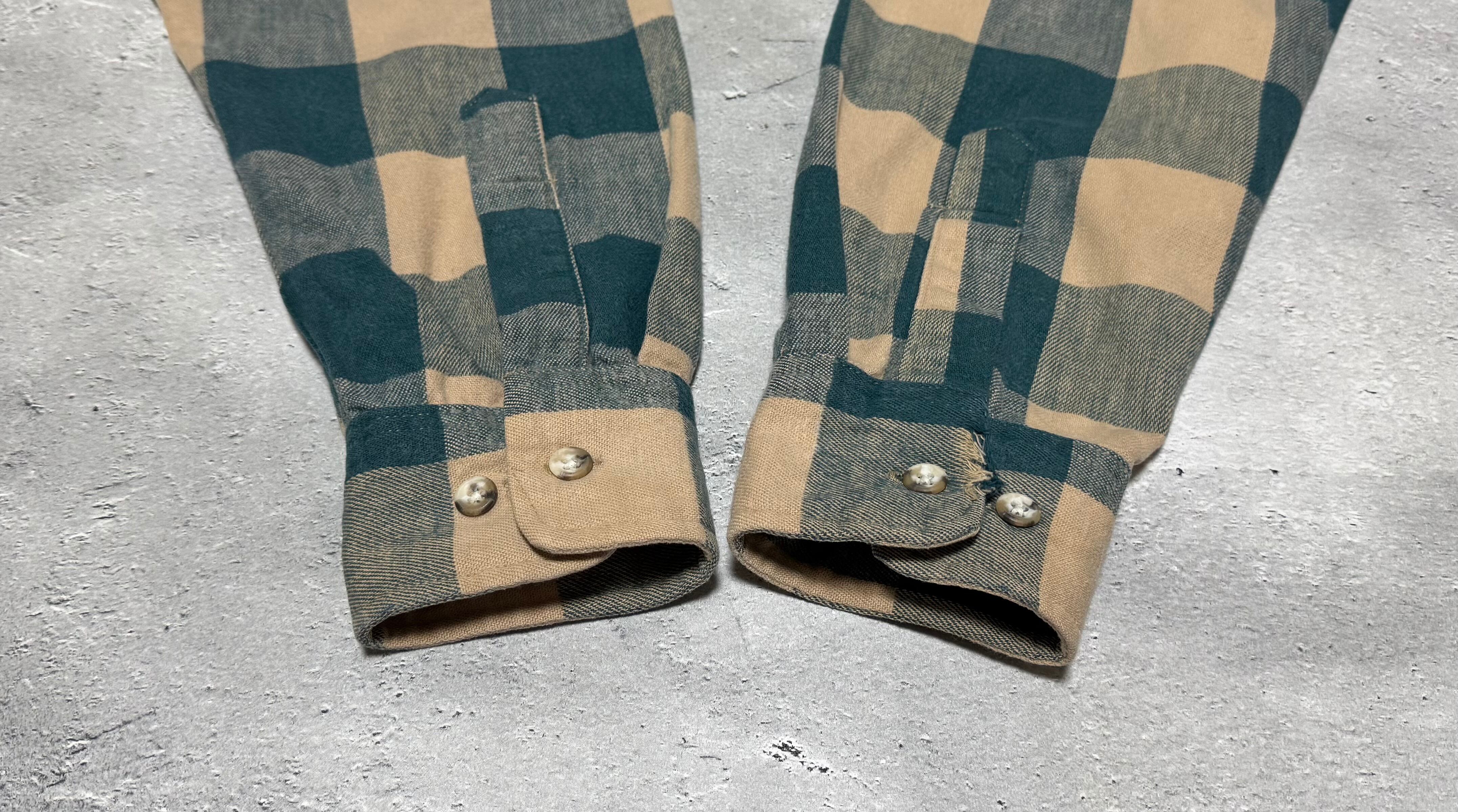 90年代ST JOHN'S BAYの中厚手のネルシャツになります。色味はピンクベージュに、ダークグリーン系のあまり見ない色味になります。