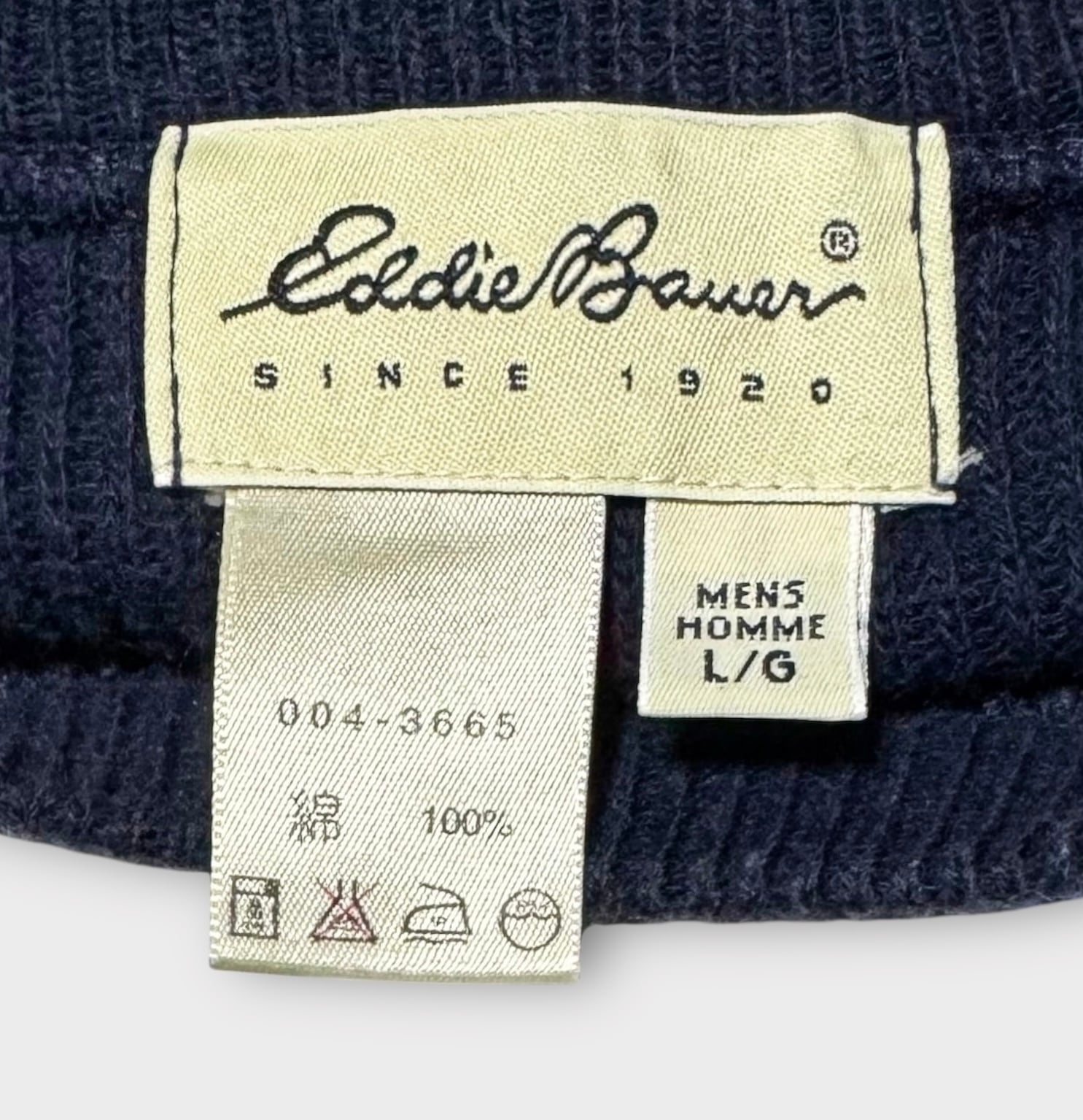 90's USA製 EDDIE BAUER 前V Cotton Knit Sweater / L